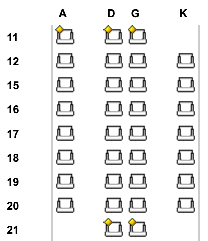 Solo travelers, meanwhile, will certainly want to choose the single "A" and "K" seats, as will companion flyers who would prefer to sit at a window.