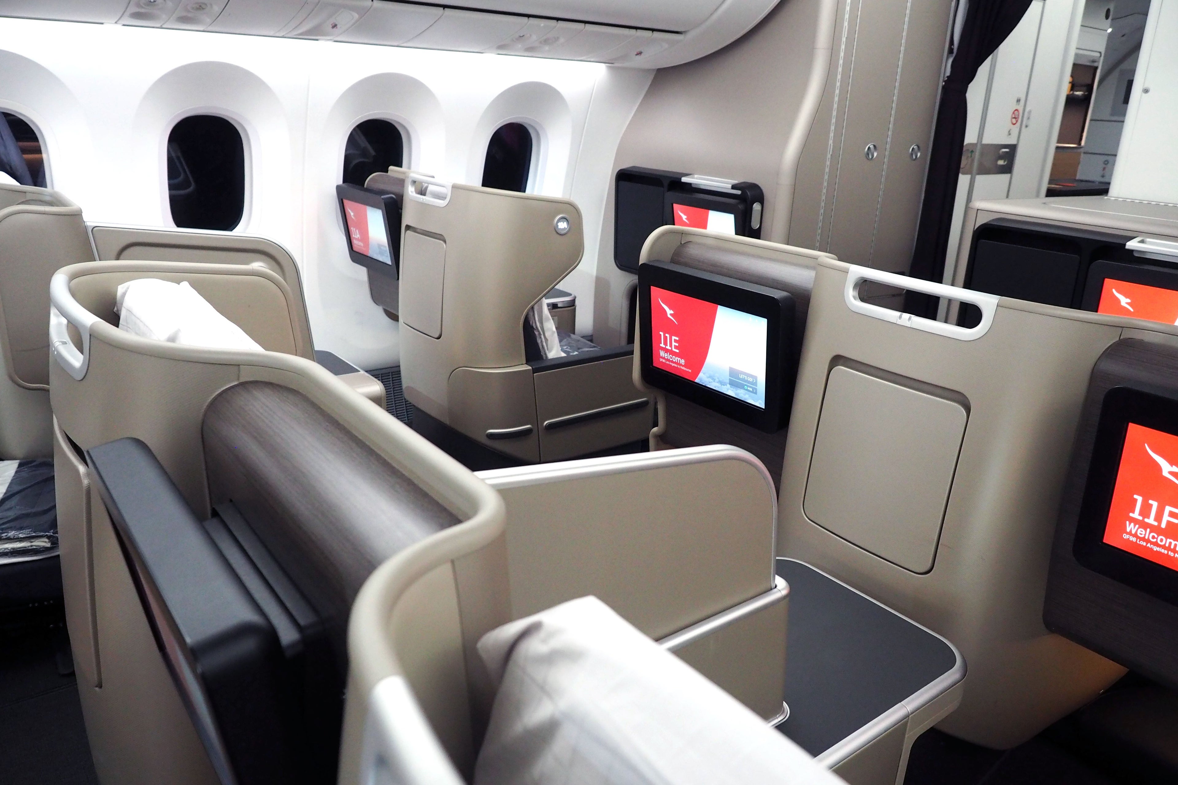 The Dreamliner's business-class cabin is arranged in a 1-2-1 configuration, meaning every passenger has direct aisle access. On the 747s that it's phasing out, Qantas business-class seats are arranged in a 2-3-2 configuration. While every seat does have aisle access, some are better than others — depending on your situation.