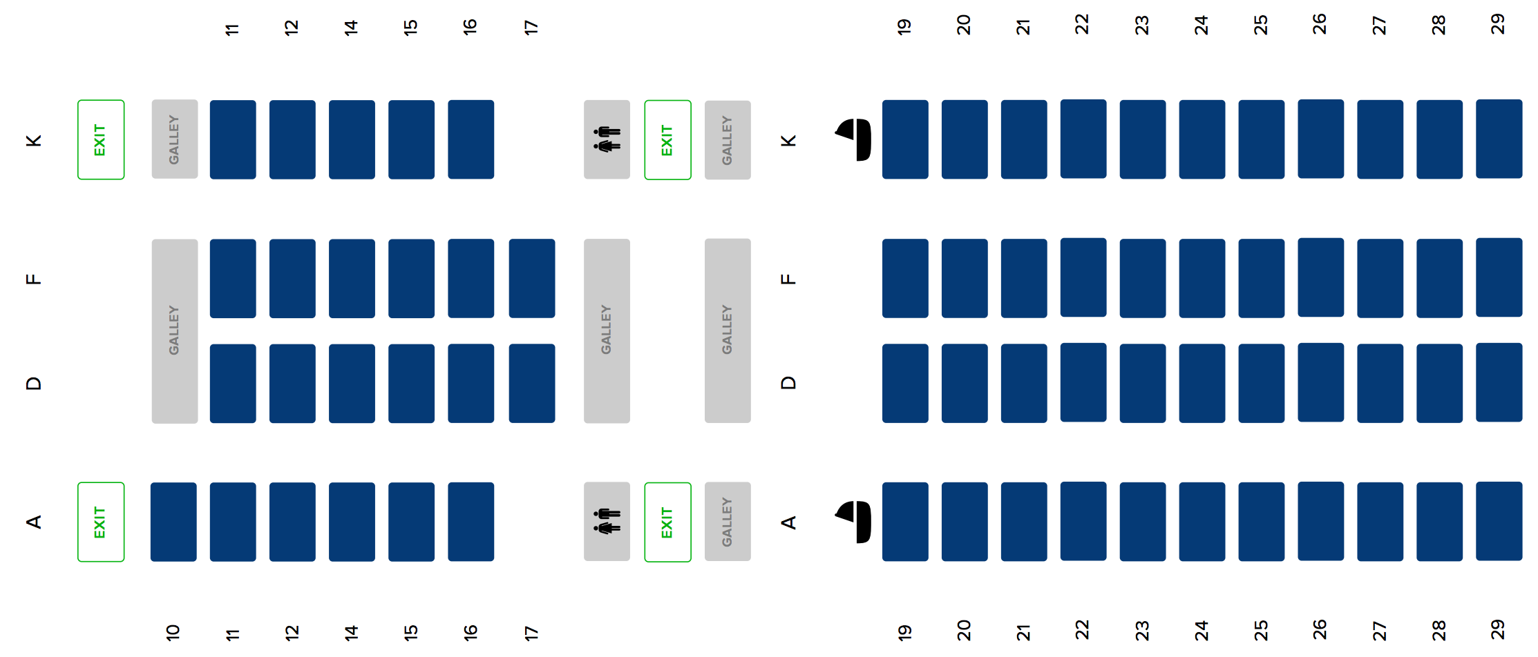 14A and 14K should be your best bet, followed by A and K seats in rows 21, 22, 23, 24, 25, 26 and 27.