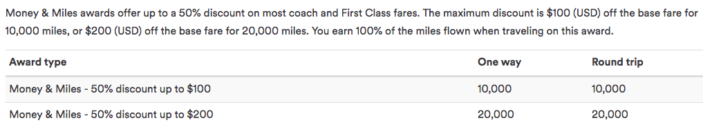 Alaska Airlines offers a "Money & Miles" option that seems to be a combination of Delta's Pay with Miles and Miles + Cash. With Alaska's program, you can get up to 1 cent per mile, redeeming them at two tiers — either 10,000 miles for up to $100 off a fare or 20,000 for up to $200 off a fare.