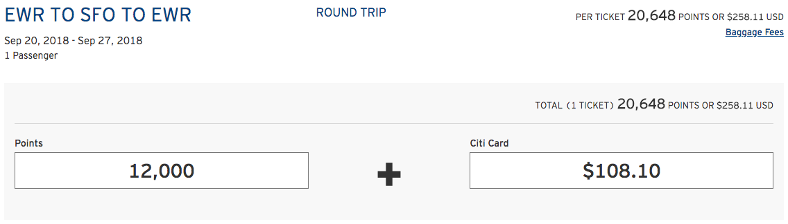 Finally, it's possible to redeem a combination of flexible bank points and cash, like Chase Ultimate Rewards or Citi ThankYou points, for flights or hotels. By booking through either bank's travel portal, you'll be able to choose the exact amount of points and cash you want to redeem for your tickets.
