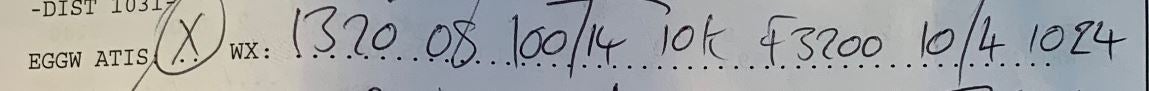 On the far left of the strip are the letters EGGW. That's the four-letter ICAO identifier for London's Luton Airport. Airports have three- and four-letter codes; passengers typically only see the former, but pilots are familiar with the latter.