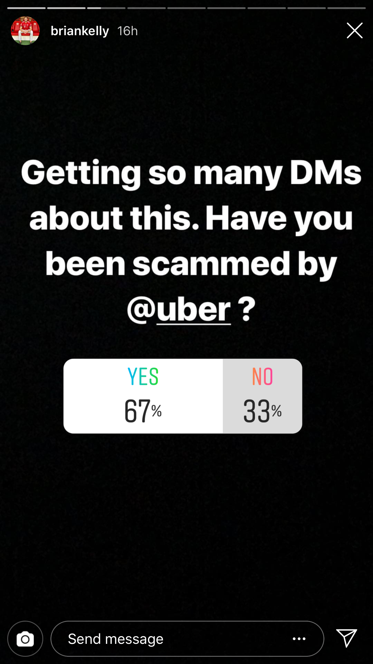 When I posted about my experience on my Insta stories, my poll stated that 67% of followers had been scammed by Uber at one point or another, which is way more than I expected.