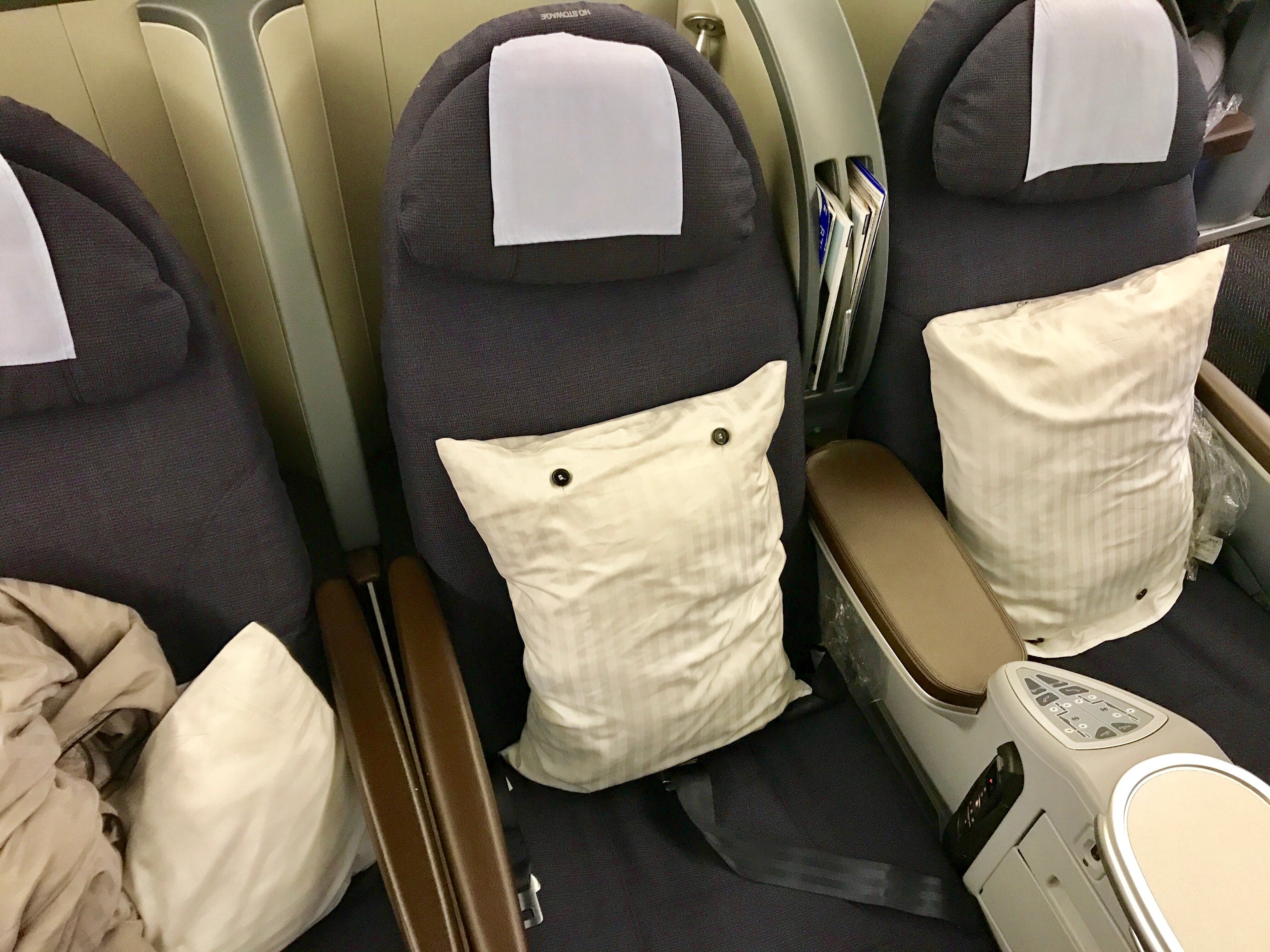 My bed last night, Seat 2F on the United 777 from Honolulu