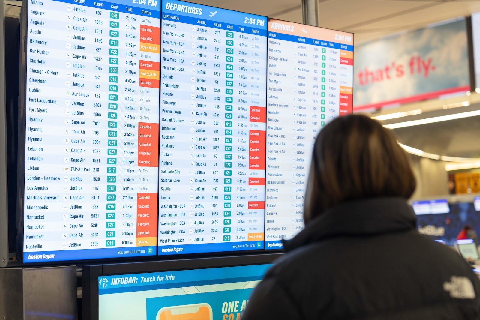 Hundreds of additional cancellations piled up at nearby Baltimore/Washington International Thurgood Marshall Airport (BWI) and Dulles International Airport (IAD), amid similarly treacherous conditions.
