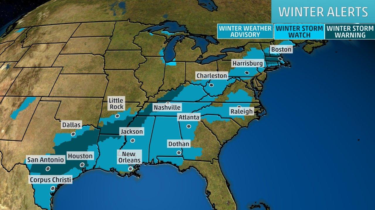 Affects will spread east as the band of winter weather sweeps across the eastern US: