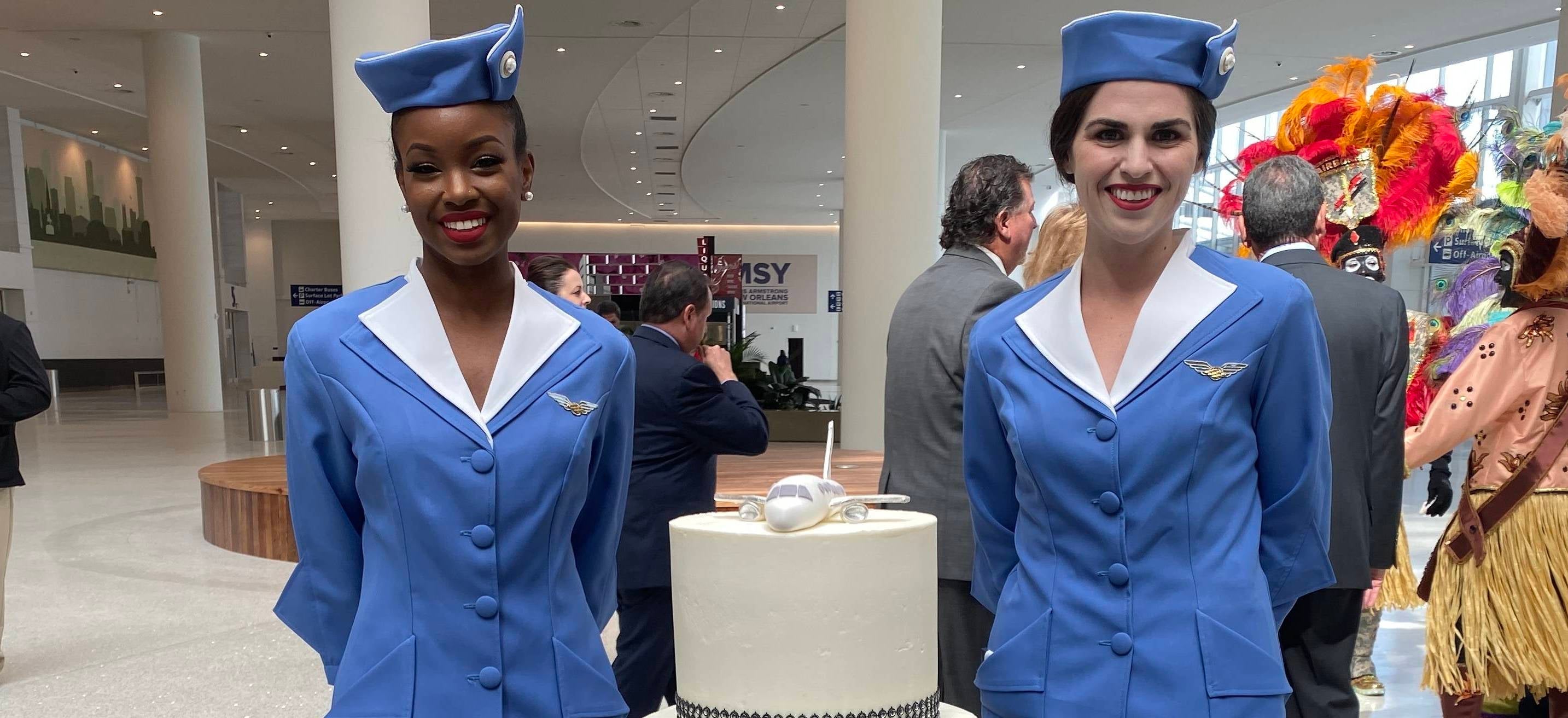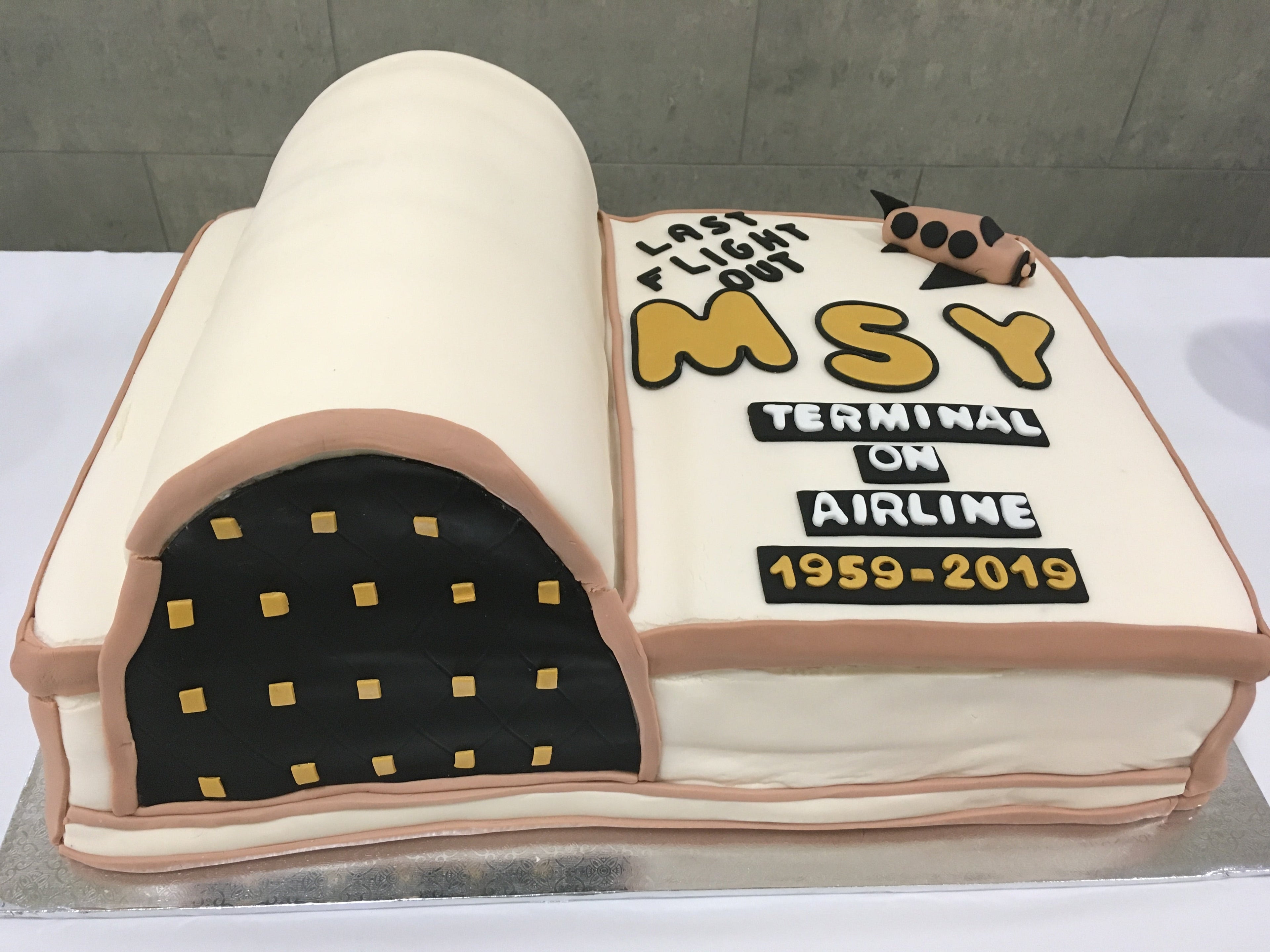 The celebration also featured cakes emblazoned with "The New MSY" and vintage flight attendant costumes.