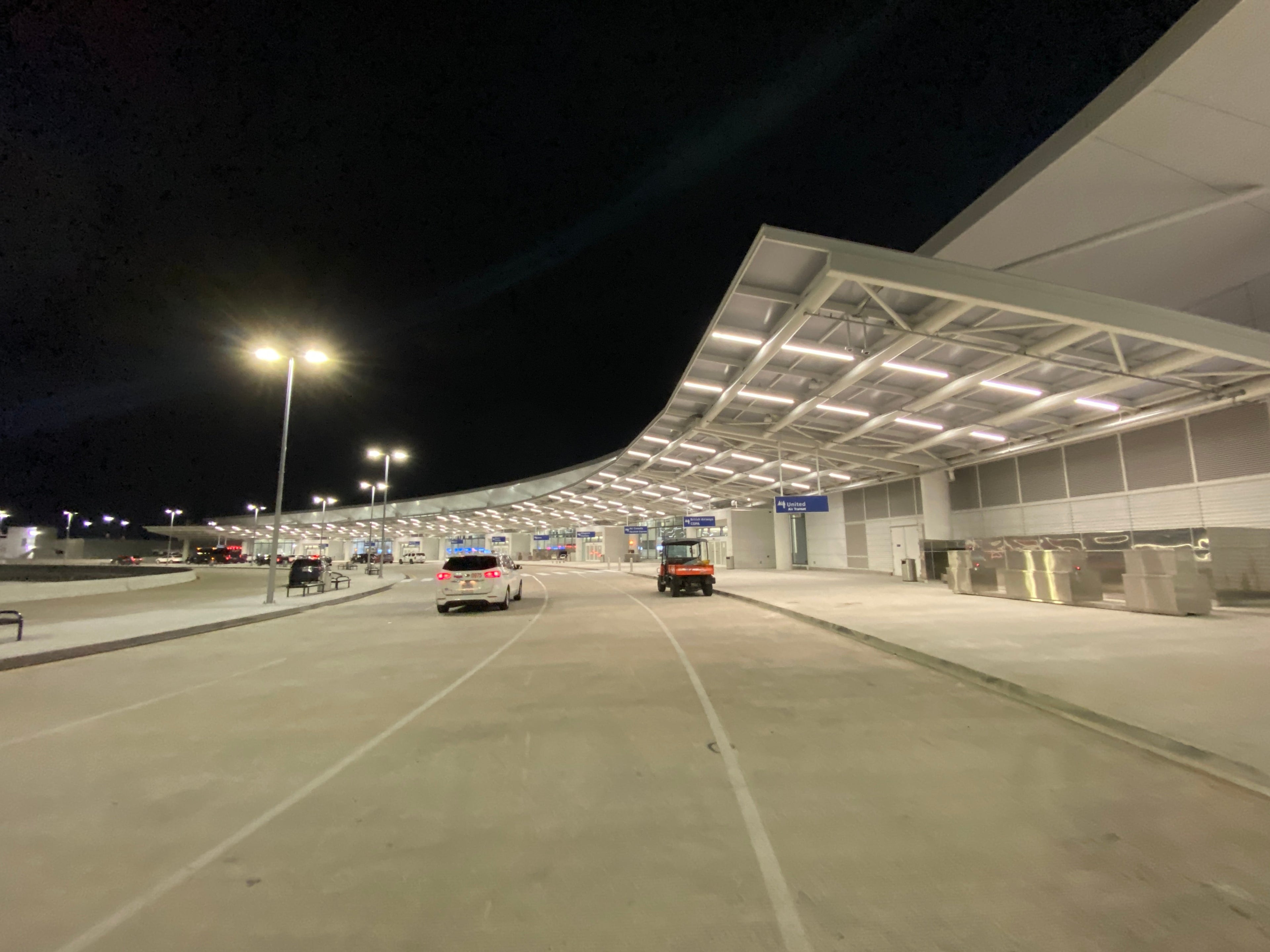 The last plane to pull into the old terminal was Southwest Flight 993, which arrived from Dallas at 8:40 p.m. Then the new terminal had a soft opening of sorts. All flights scheduled to arrive after 8 p.m. that were terminating at MSY for the night disembarked their passengers and their baggage at the new terminal. American Flight 4574 from Washington Reagan National was the first arrival. The aircraft that remained from earlier landings at the old terminal were repositioned to the new facility across the airfield for their first flights out. Concessions had yet to open, but the baggage claim and ground transportation links were operating. A harbinger of things to come, this went smoothly.