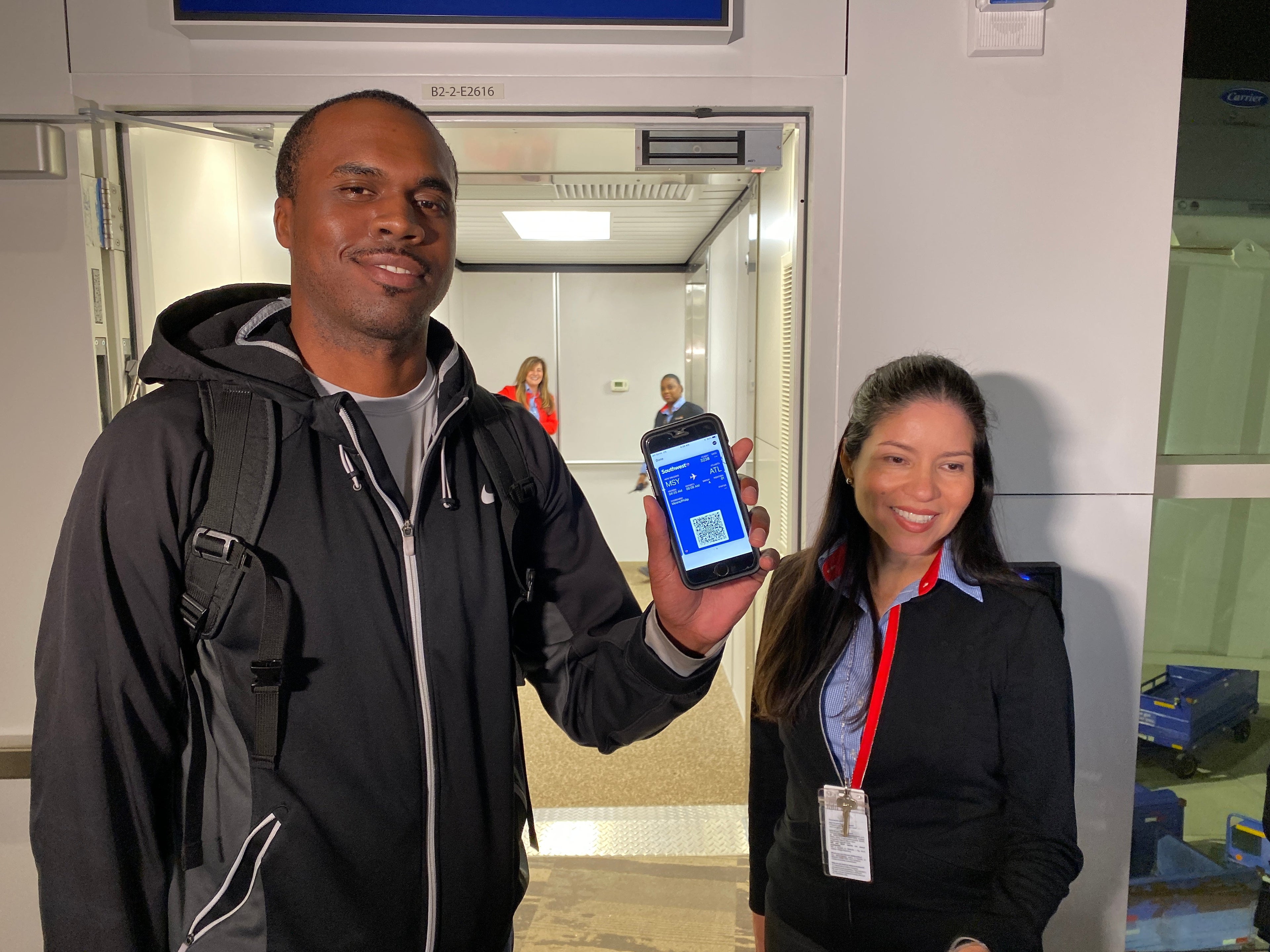 The first passenger ever to board a flight from the new MSY didn't realize immediately why the day was special.