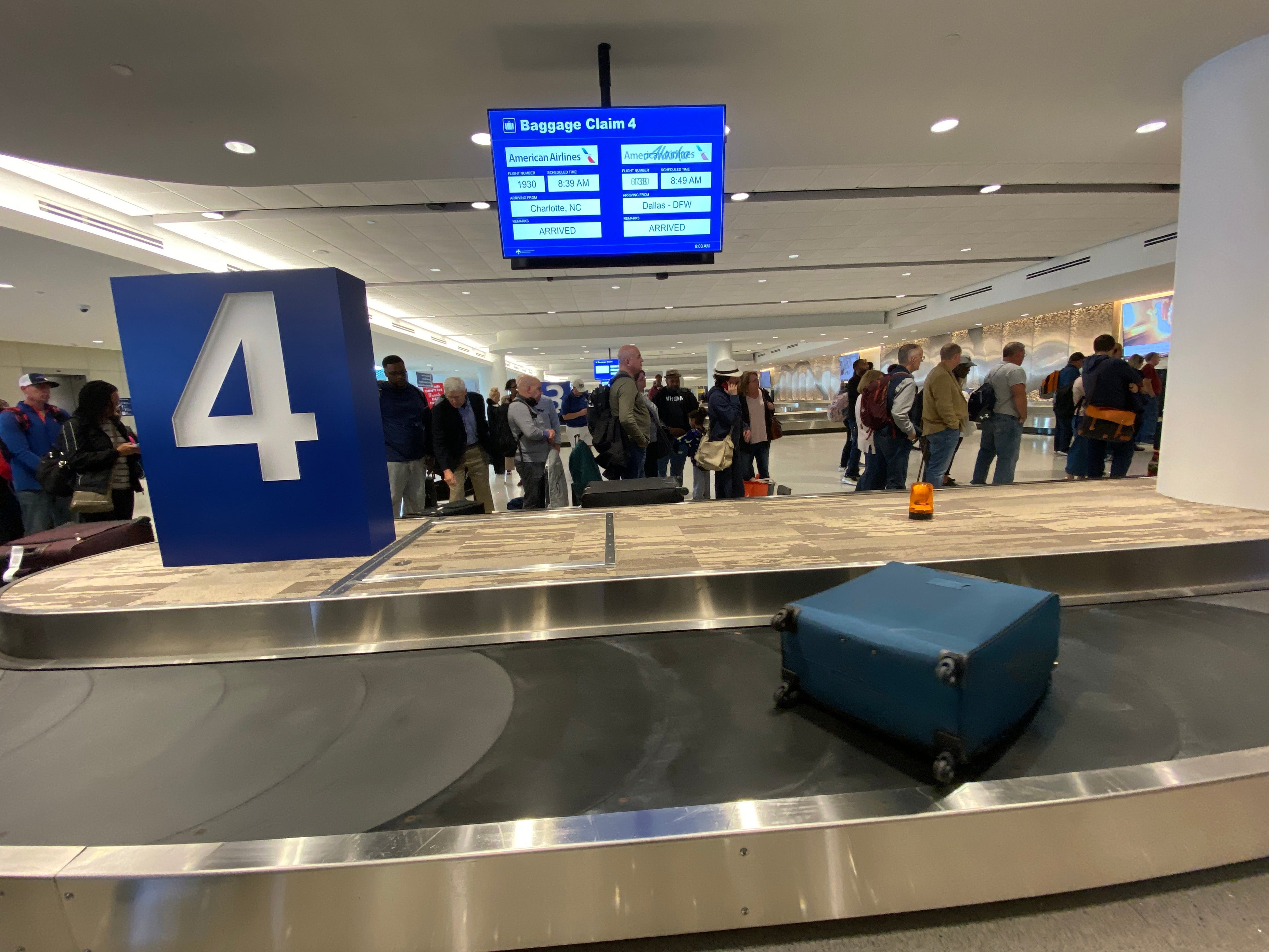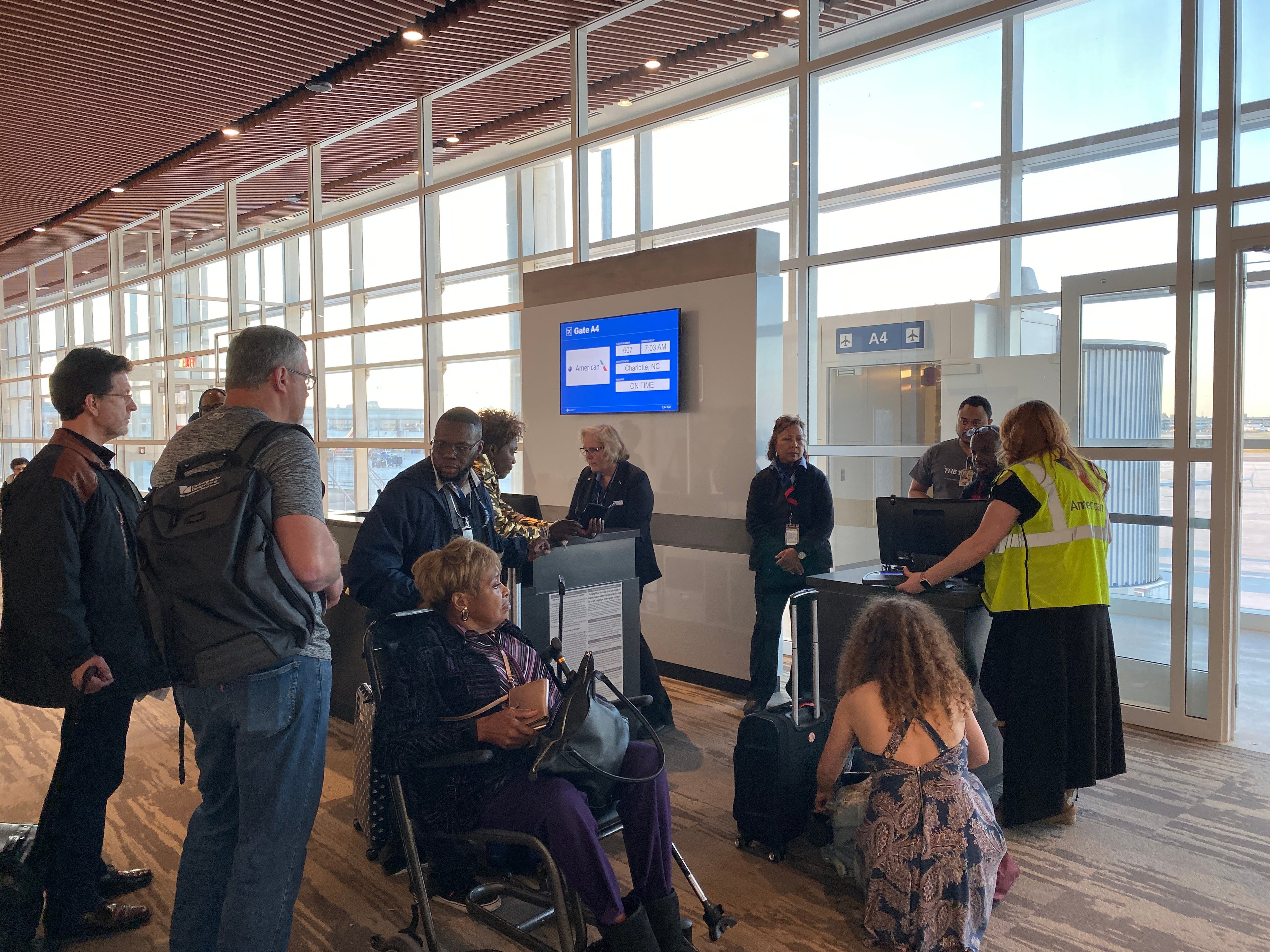 Hours before dawn, at 3:30 a.m., the terminal officially opened with passengers lining up at the new check-in counters. These Southwest passengers were among the first.