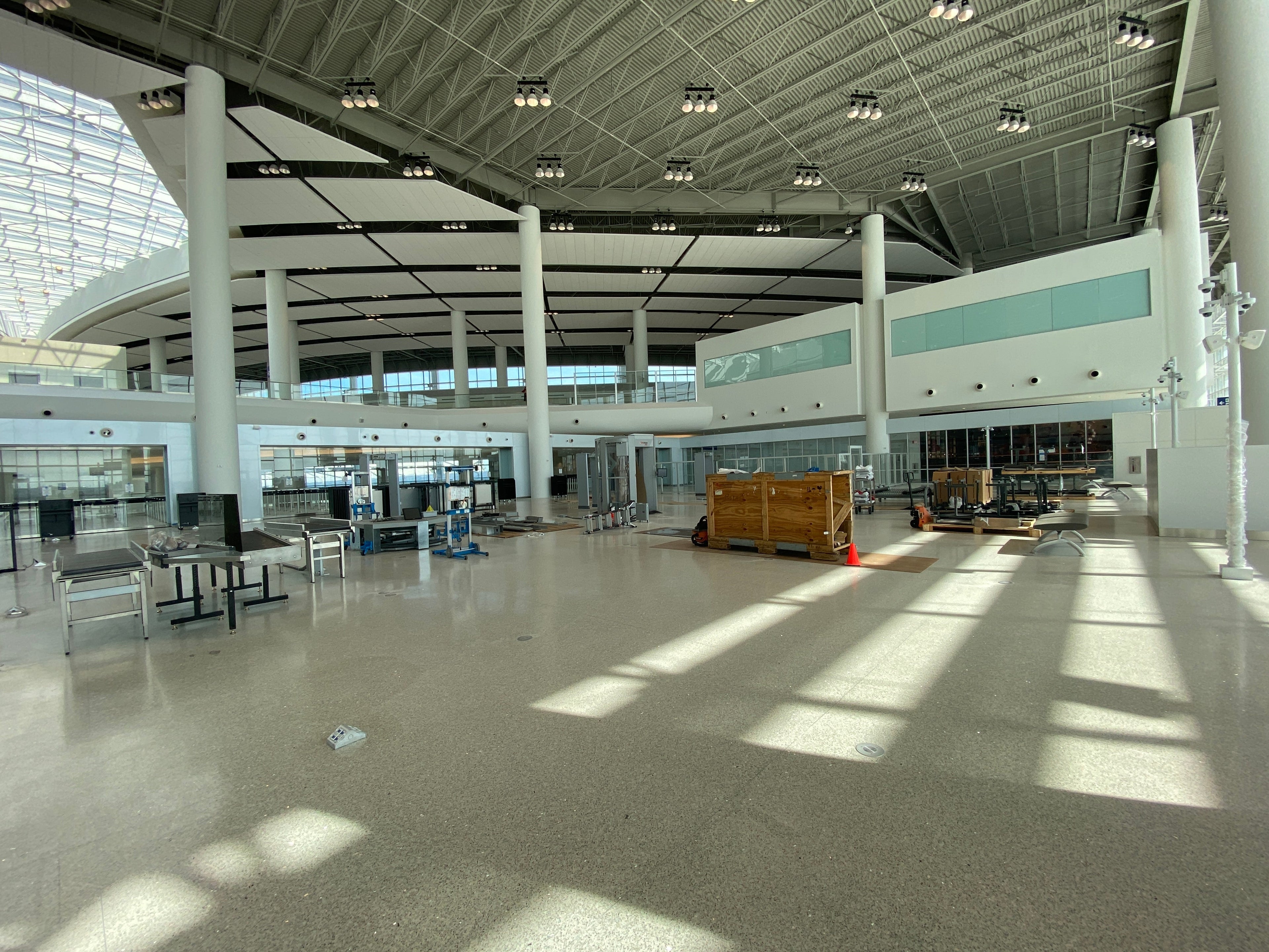 The finishing touches were being completed throughout the terminal just 24 hours before it went into service. The airport director and hundreds of others didn't sleep a wink as the final move — kiosks, ground equipment and TSA screening equipment — occurred overnight.