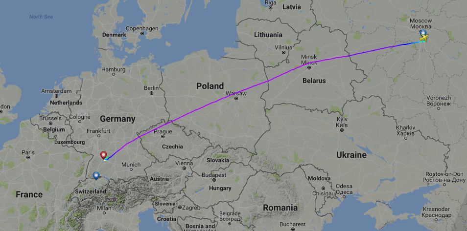 Swiss Flight LX1327 was diverted to Stuttgart airport from Moscow. Image by FlightRadar24.