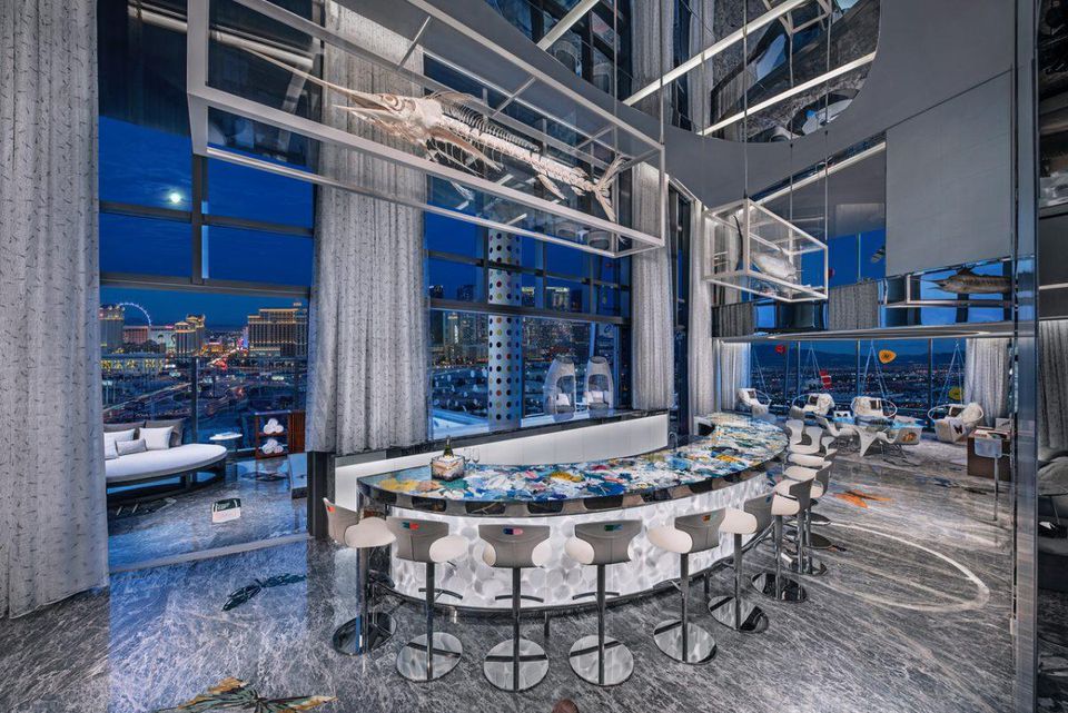 This suite is the masterpiece of British artist Damien Hirst, whose work is featured throughout the suite. This 9,000-square-foot suite sleeps four, is spread between two stories and overlooks the Vegas Strip. For $100,000 a night you can expect 24-hour butler service, a private property tour, chaffered car service, A-list access to day and nightclubs and a recording studio, and a $10,000 credit to spend on site. Note that there's a two-night minimum stay requirement, so at a minimum you'll have to pay $200,000.