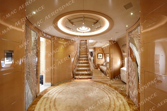 Of course, there's really no comparing this jet to anything that's flying commercially. The plane's main entrance looks more like a luxury hotel lobby than an aircraft.