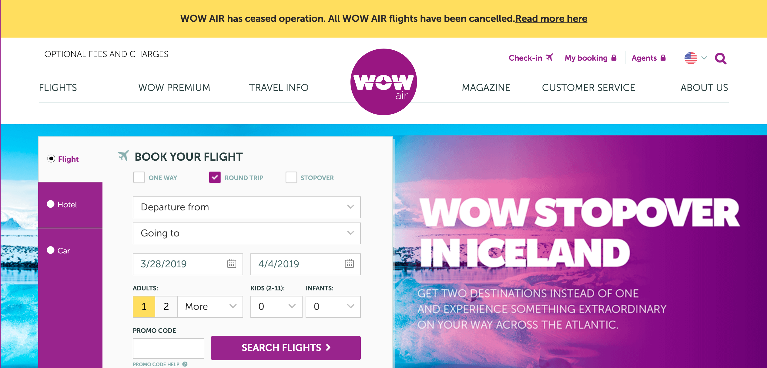 WOW air Collapses, All Flights Canceled Effective Immediately