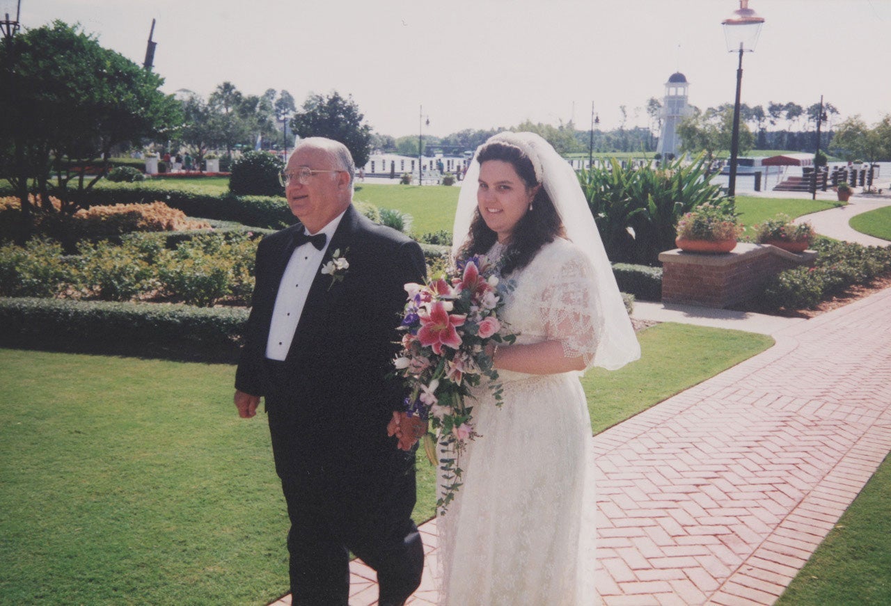 After my boyfriend proposed and it was time to plan the wedding, I didn't have to think twice. We'd marry at Disney's Yacht Club Resort. A close-knit group of immediate family and friends joined us for what people still talk about as one of the most epic weddings they've ever attended. It wasn't splashy -- I didn't arrive at the ceremony in Cinderella's Coach and no characters greeted us at the reception. But we tied the knot in a lovely gazebo in the resort's rose garden, celebrated with a reception at Ariel's restaurant and closed out the evening with fireworks at Epcot's World Showcase. That was 25 years ago.