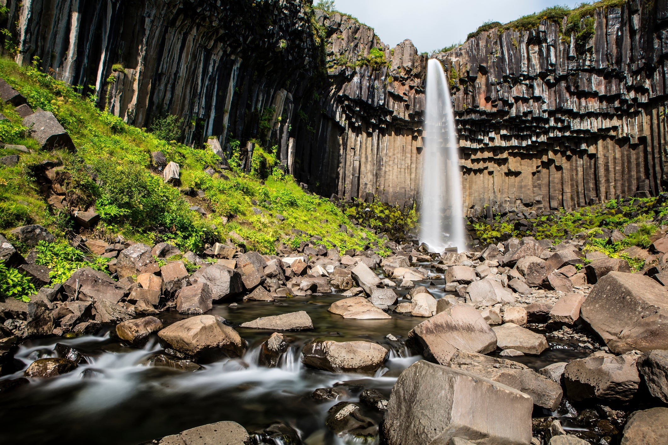 Located in Skaftafell in Vatnajökull National Park in Iceland, one if its most distinctive features is perhaps the dark lava columns that surround the cascade. If the peculiar, hexagonal shapes of the columns strike you as familiar, you might have seen the otherwise rare formations at Giant's Causeway in Northern Ireland or by Devil's Tower in Wyoming.