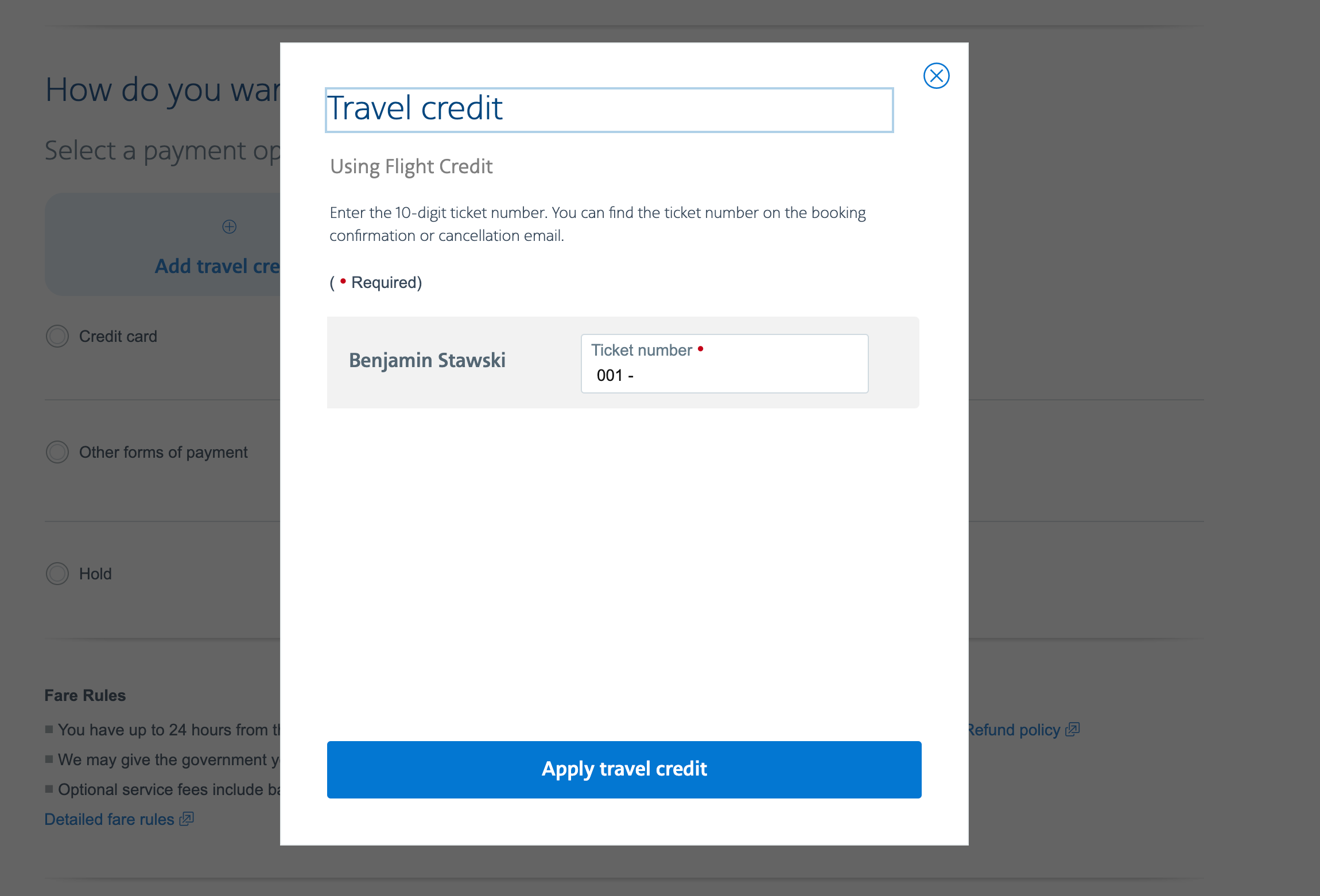 To book a trip using the credit simply search for a flight as you normally would. Then, on the checkout page, under the payment options, there's an option to apply your flight credit. This feature is available both via the airline's website and mobile app. Presently, you can only apply one flight credit per passenger per trip.