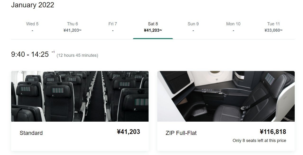Reservations have opened for the new flights. TPG found one-way fares in January from LAX to NRT ranging from USD $361 for a "Standard Value" seat to $1,025 for a seat in "ZIP Full-Flat Value." (Airfares are slightly lower for travelers under the age of seven.)