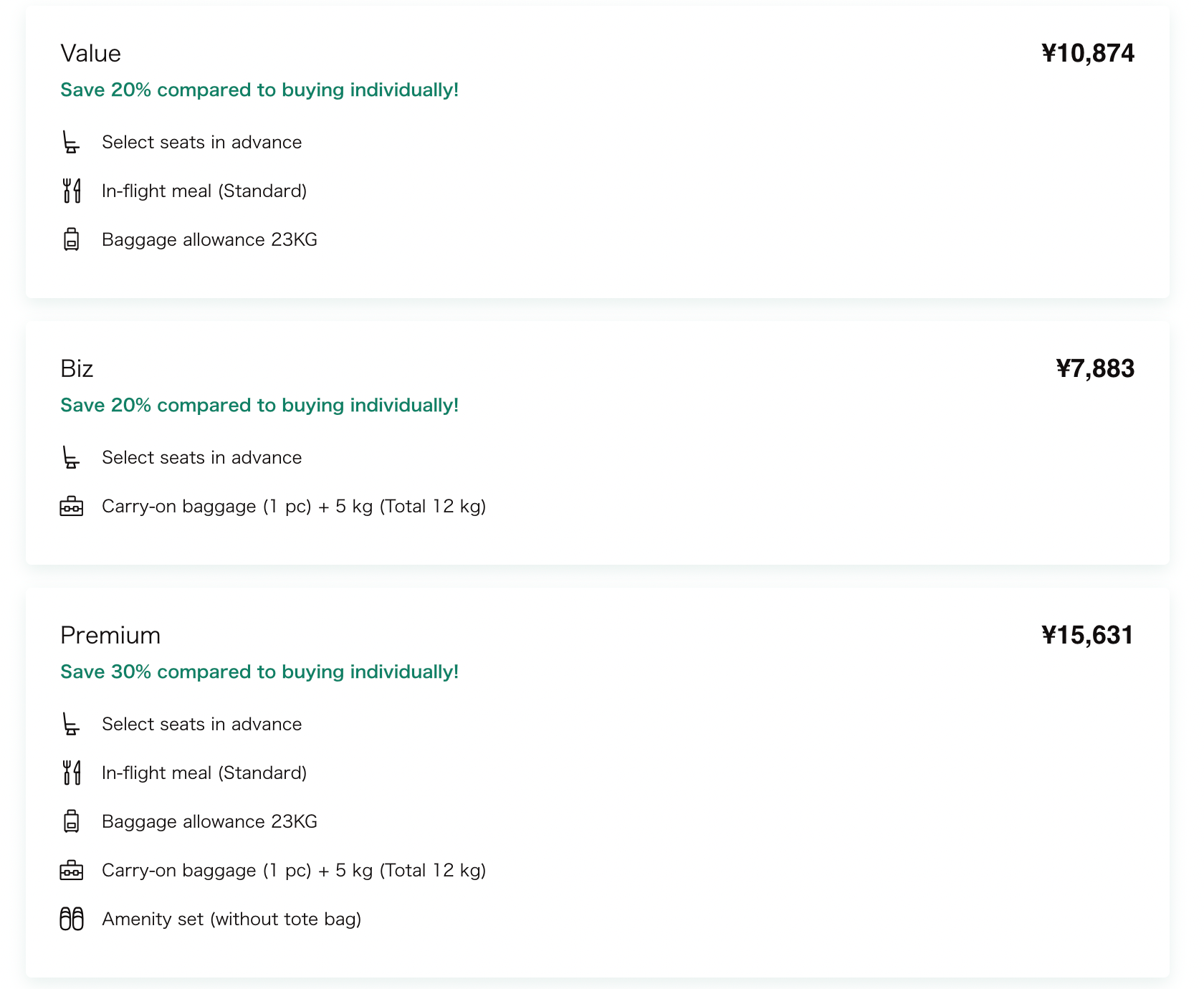 The carrier gives passengers the option to buy a business-class lie-flat seat, but flyers must also pay extra if they want other perks like seat selection, checked baggage and inflight meals. Travelers can also pay for certain ancillary perks separately rather than purchasing a bundle.
