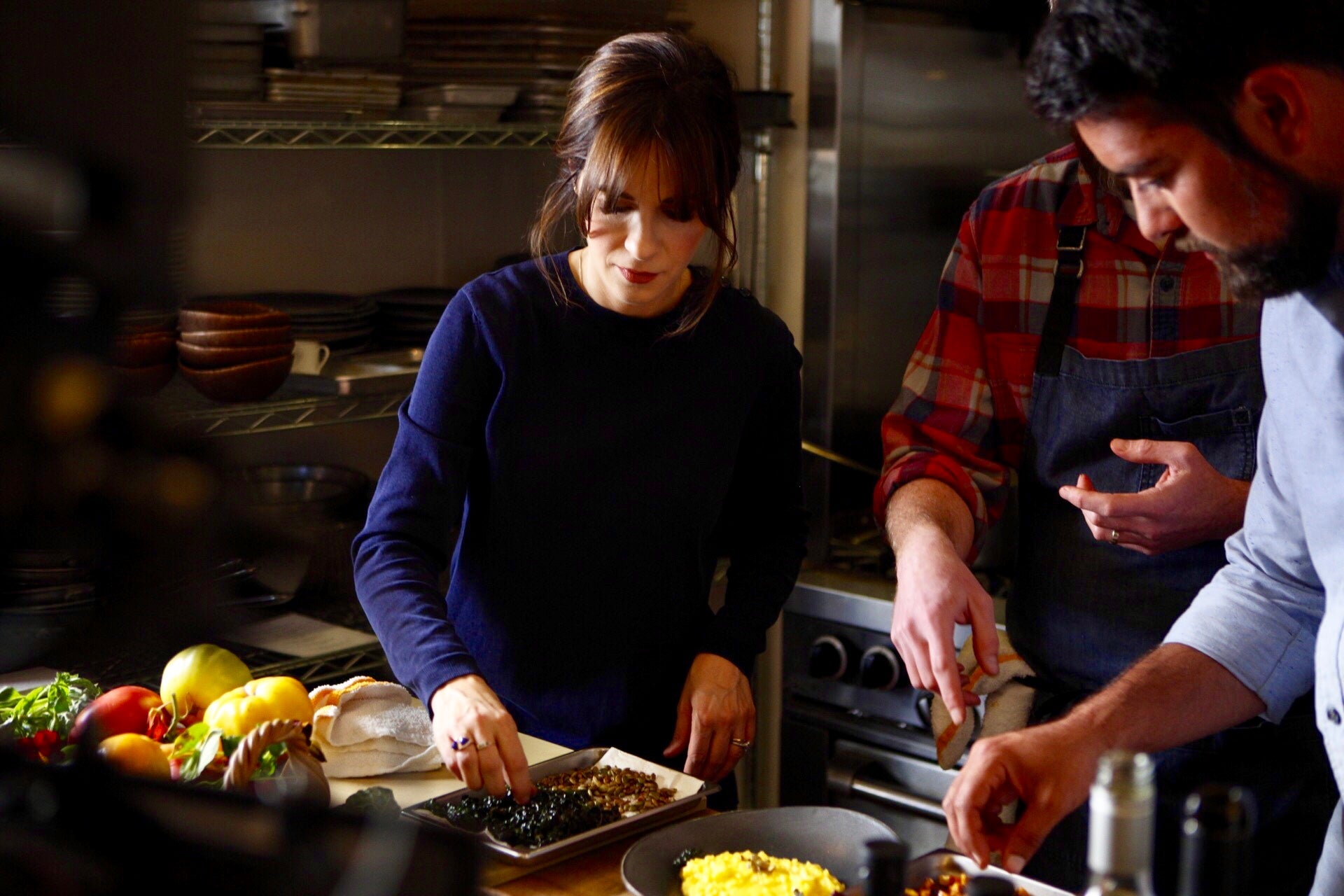 When Deschanel and Toro got to sit down and eat, they were literally tasting the fruits of their labor (a fresh tomato and basil salad; creamy squash rice topped with roasted beets and kale). Nearly every ingredient was sourced from the ranch, just hours before it was prepared.