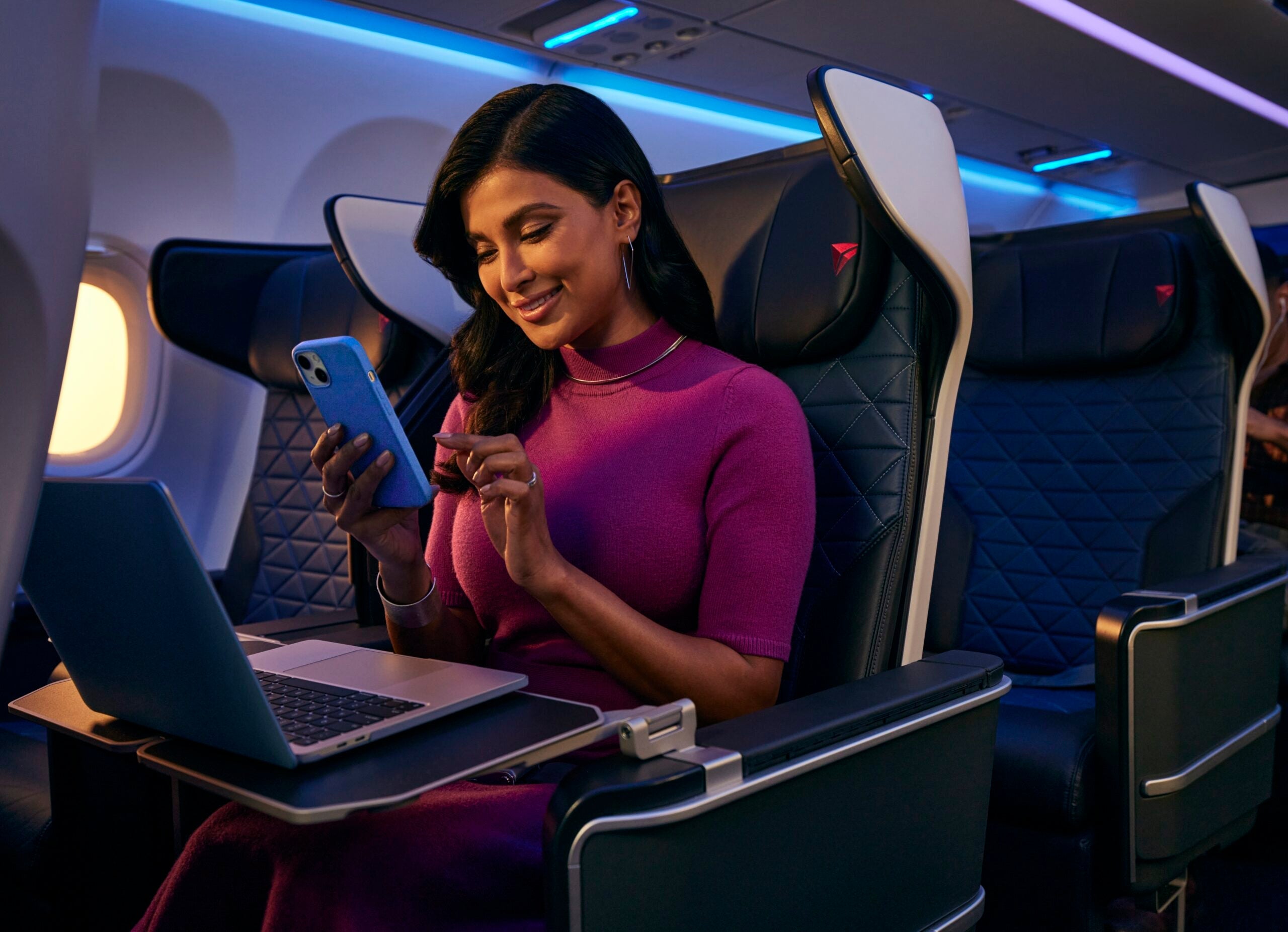 With Delta Sync Wi-Fi, presented by T-Mobile, you can scroll, stream and never miss a beat. When you sign in with your SkyMiles Membership, you’ll enjoy curated entertainment, offers and experiences. Not a SkyMiles Member? Join for free today! Available on most domestic flights. Wi-Fi terms of use apply.