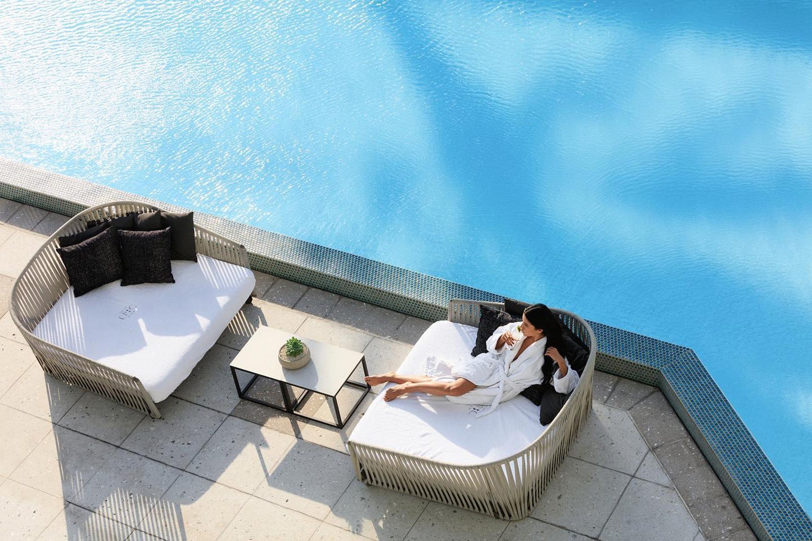 So, what does that look like? How about a business-class pod called Maya with a curved 45-inch entertainment center that syncs with your phone? Or inflight water stations so you can refill your water bottles without waiting for drink service? And then there’s the double-decker seat, business-class edition.
