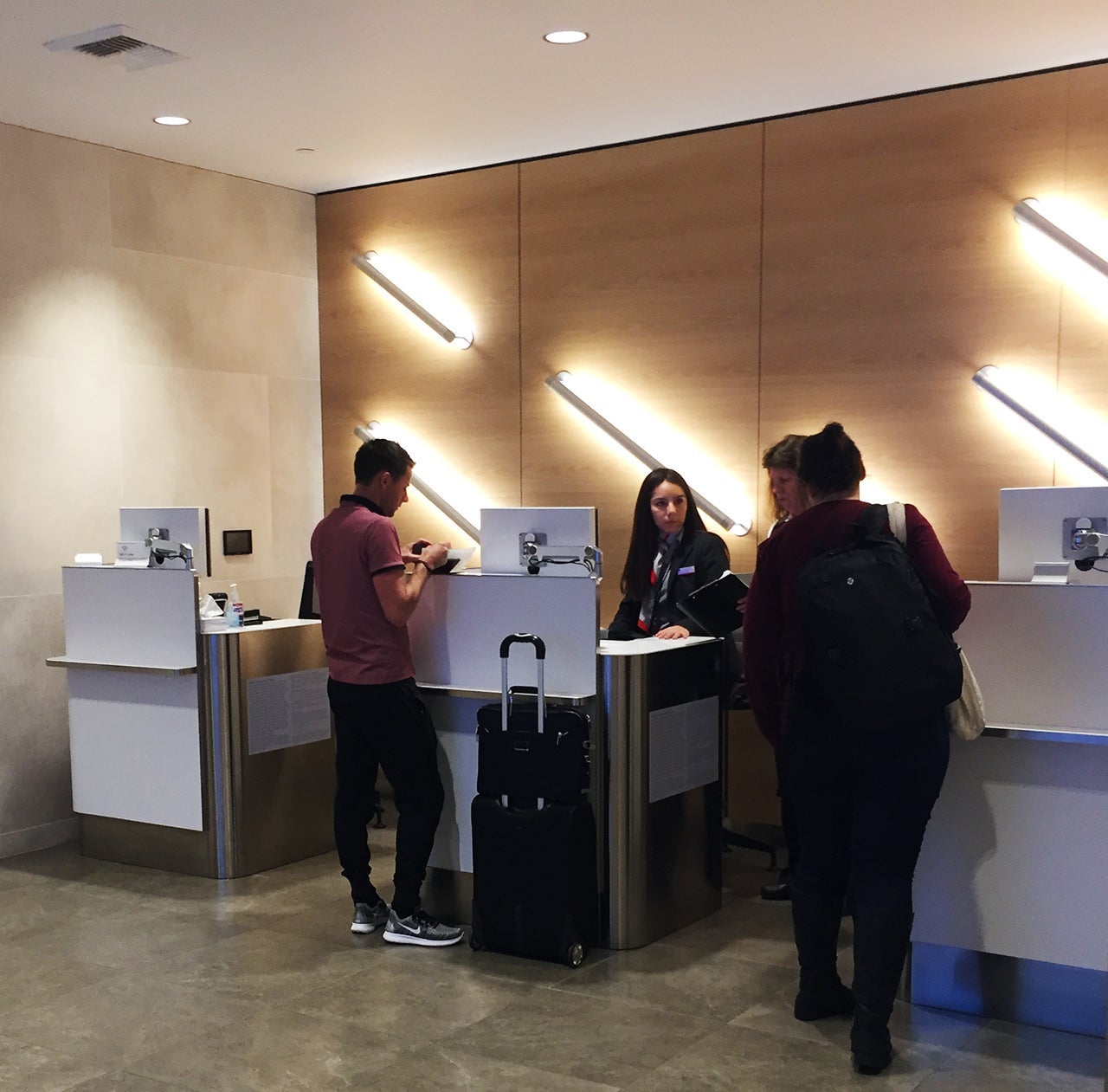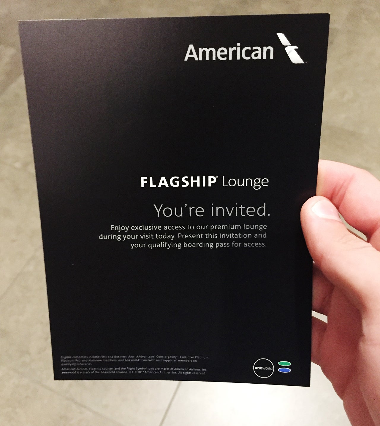 After handing my boarding pass to a check-in AAgent, I was given an invitation to the Flagship Lounge and headed up the stairs to the second floor.