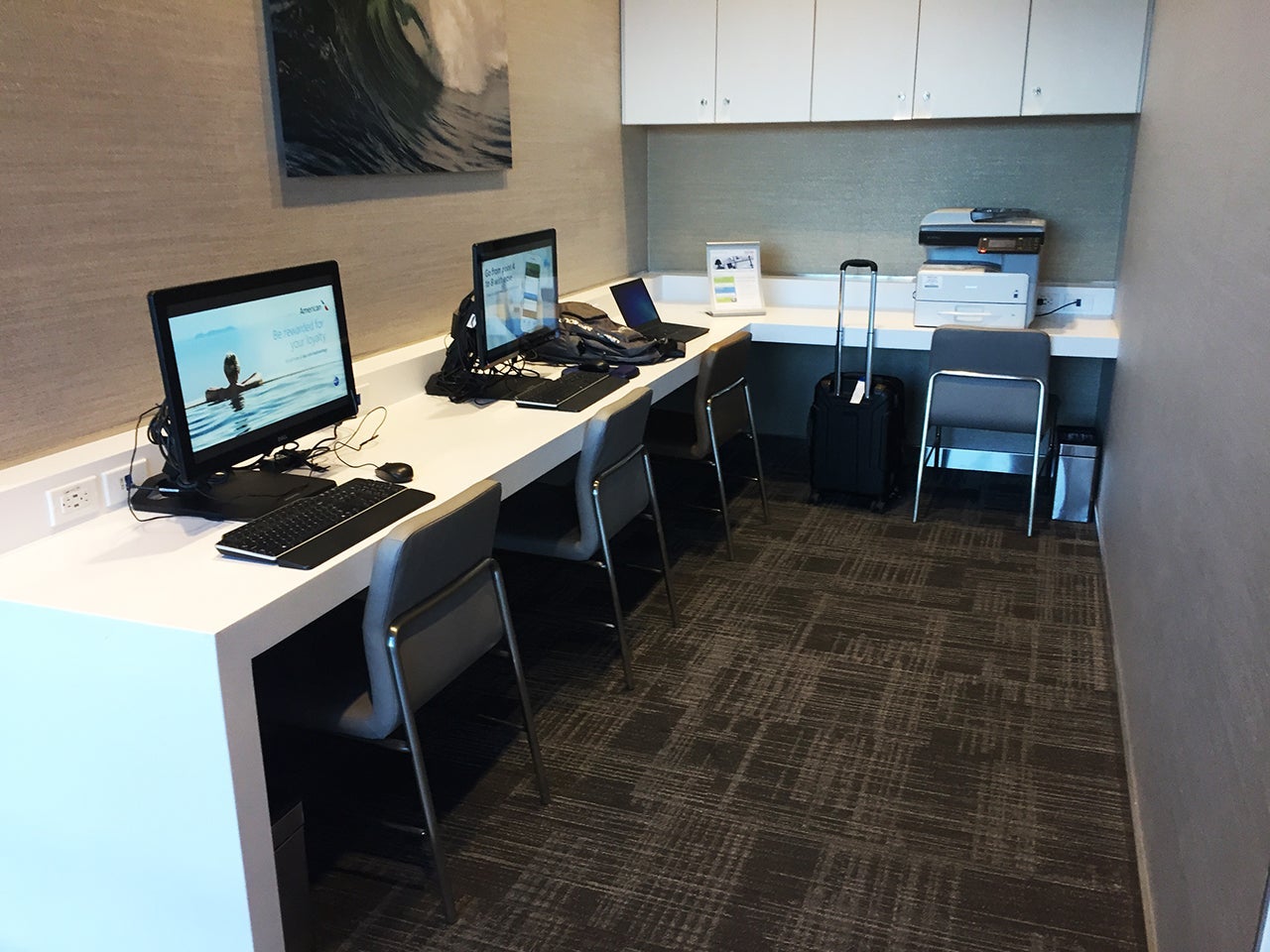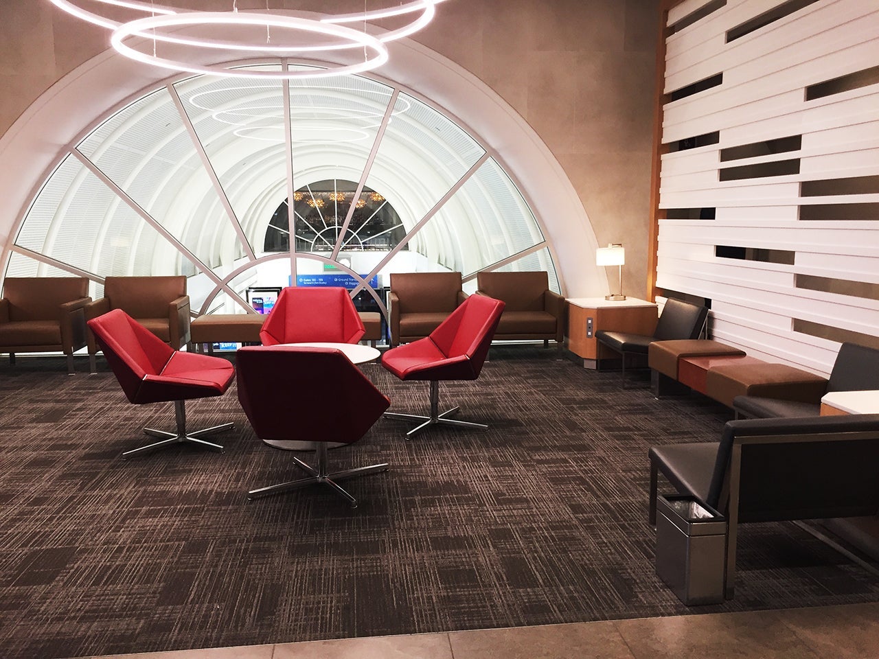 The lounge is open daily from 4:45am to 12:45am, and is located just past the security checkpoint in Terminal 4, across from gate 40. This space houses both the Flagship Lounge and the Admirals Club.