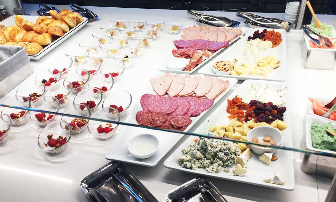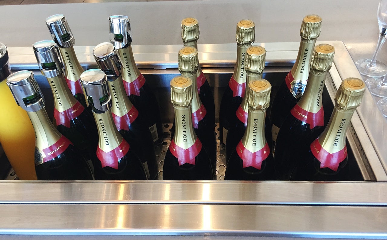 I arrived at the lounge just before 8:00am, and lounge staff were already filling up the Bollinger tub for the second time that morning. During my visit, I observed the staff go through another three cases before it was time for me to board. Another note about the Champagne: Maybe it was because the lounge guests had collectively drank about 30 bottles of bubbly before 8:00am, but no one seemed to understand how to use the resealable corks. This meant that every five minutes or so, a cork would pop into the air — startling everyone momentarily.