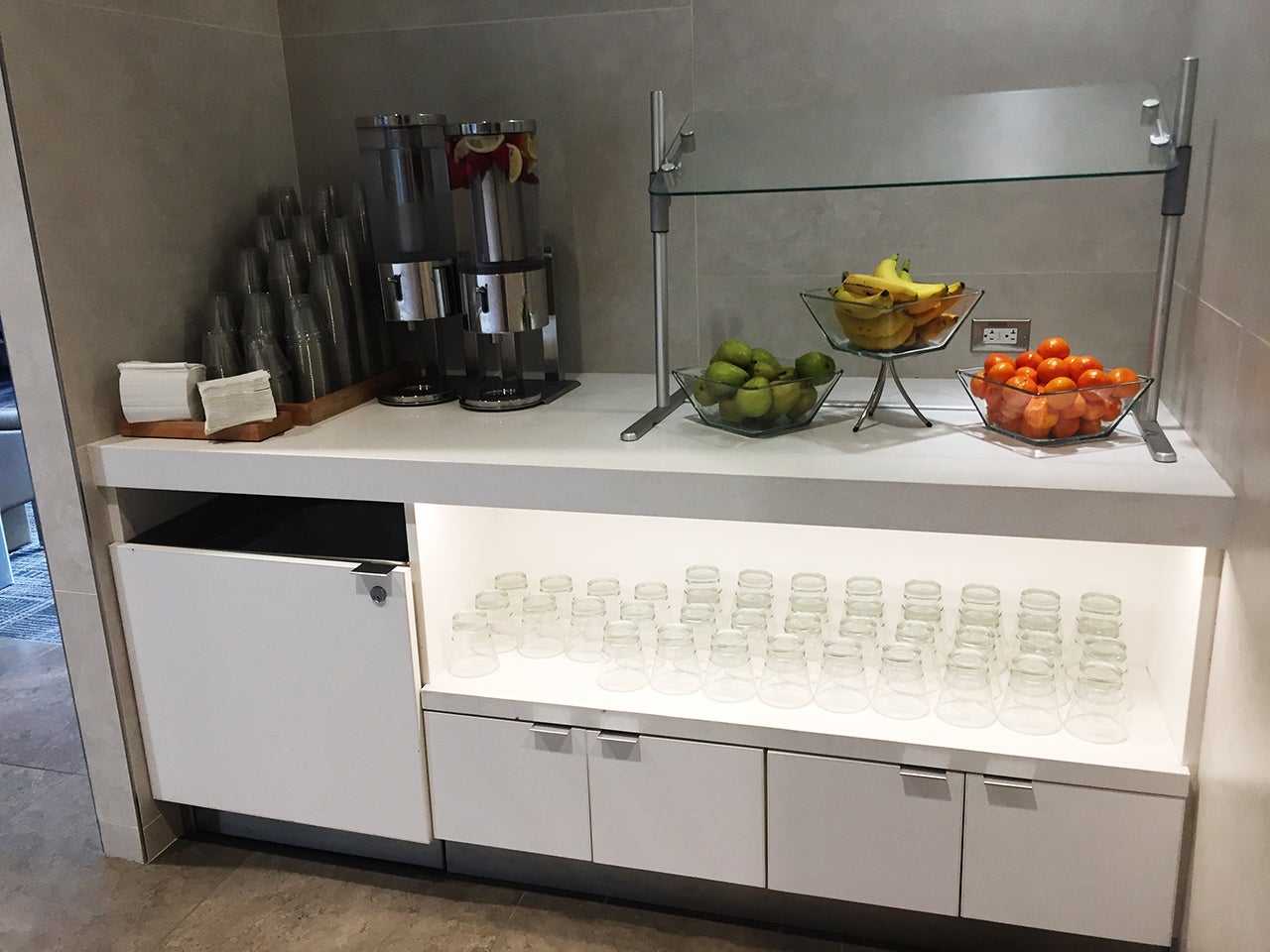 Scattered throughout the lounge were a number of small drink stations stocked with water and fruit, so you never had to walk too far.