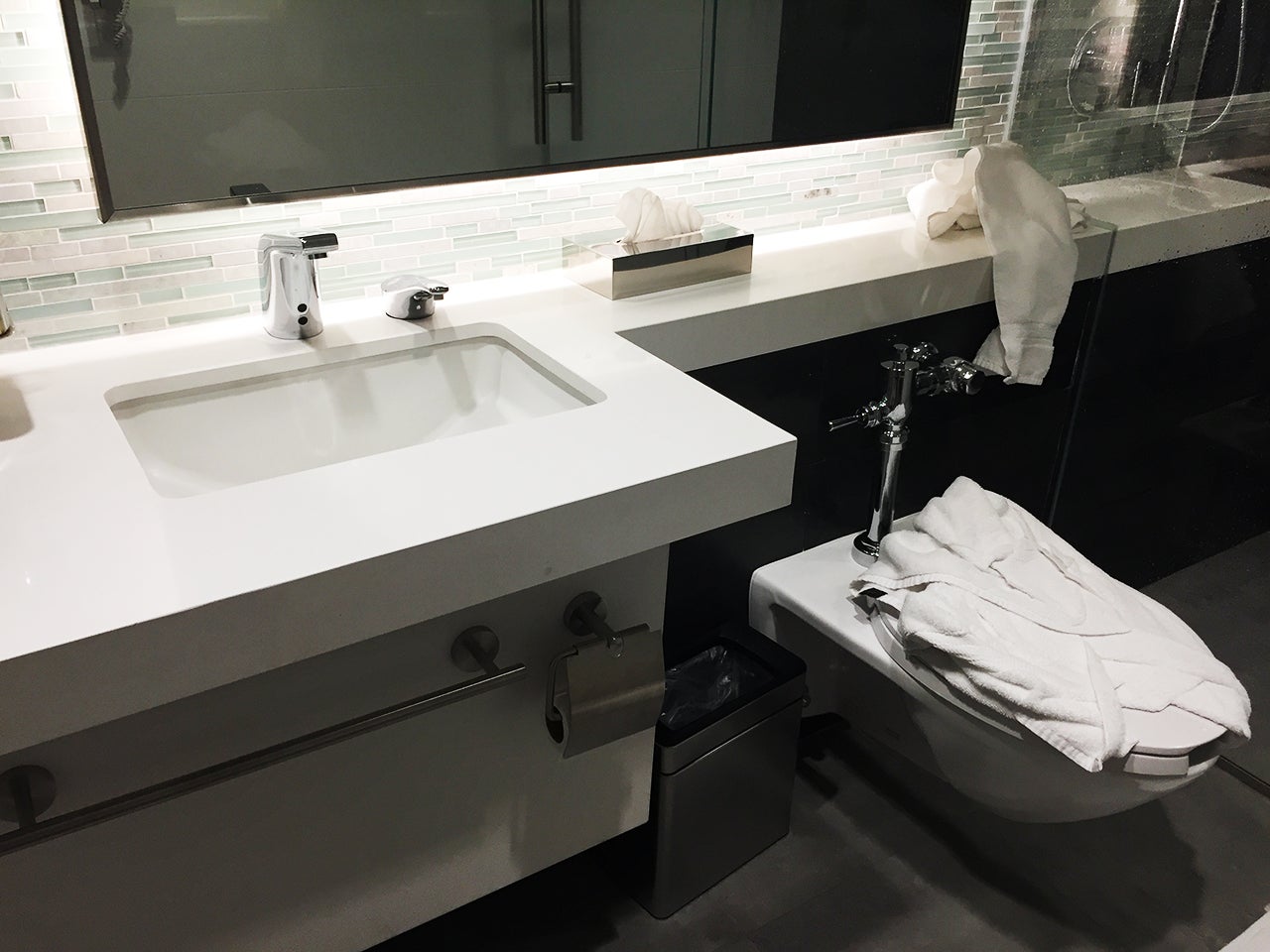The bathrooms and shower suites were down the same hallway, both of which featured C.O. Bigelow toiletries, which is the same brand that AA stocks its amenity kits with.