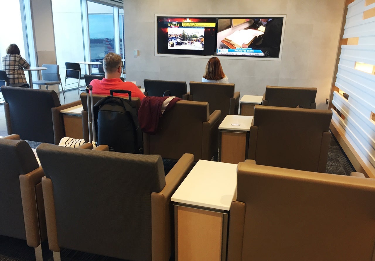 The lounge is rectangular in shape, with the entrance right in the middle. Just inside the door was a seating area that offered views of the concourse below. But, given the amount of foot traffic that this area gets, I would go elsewhere to sit.