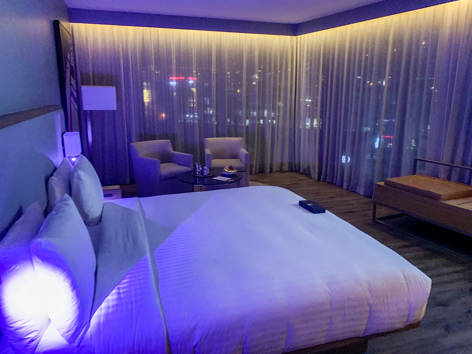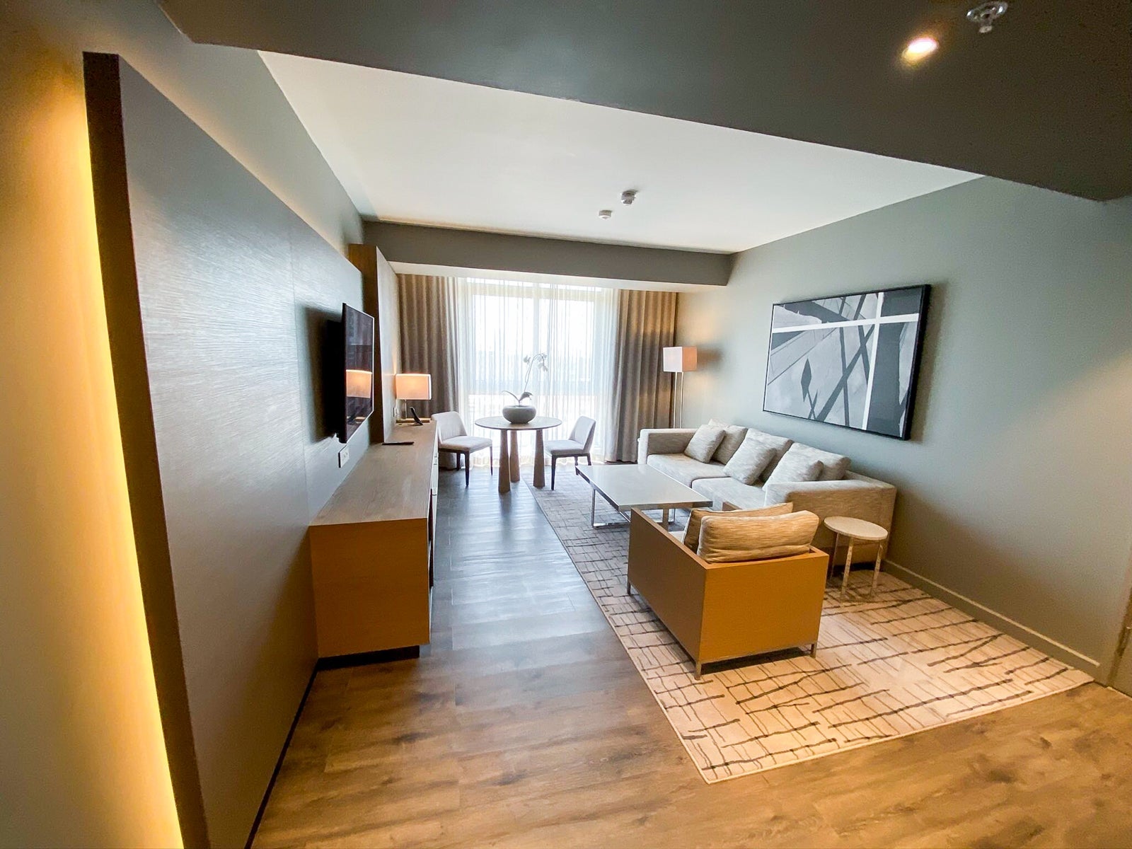 The hotel's reception area was a little small, and it was hot and crowded when I arrived, but the experience overall was quick and painless. Just outside check-in was a larger lobby with a bar and sofas to hang out in. Staff members were friendly and immediately recognized my Bonvoy status and explained my benefits, and I was heading up to my suite in no time.