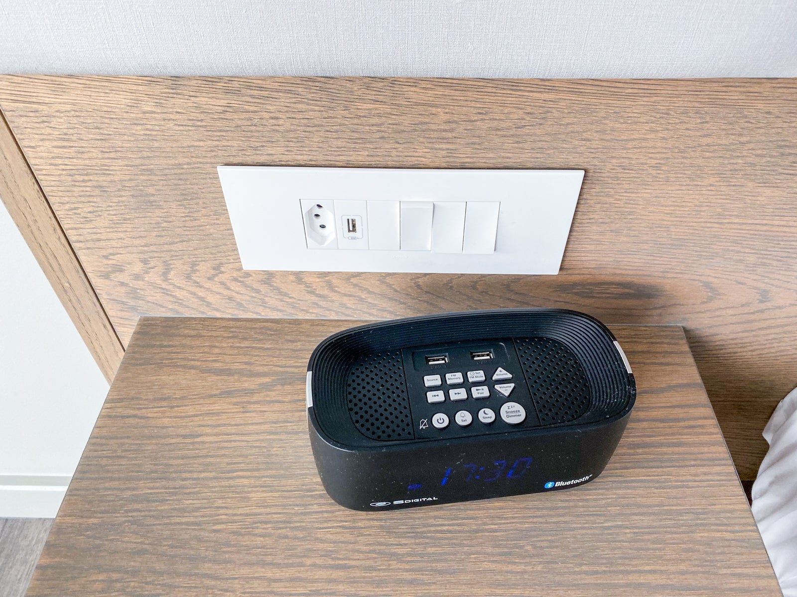 There was one power outlet and USB port to plug tech items into beside the bed, with more outlets near the desk, too.