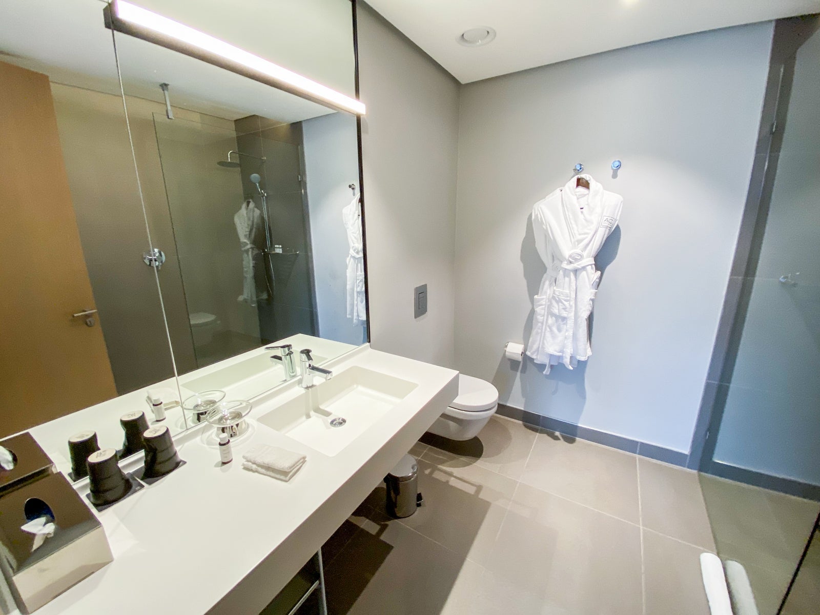 The suite was bright and airy, perfect for springtime in Cape Town. I particularly enjoyed the beautiful views from the floor-to-ceiling windows. The bedroom section had a comfortable bed with power outlets on either side, a large TV, a small table and two chairs where you could relax by the windows. There was also a workspace with a smaller window.