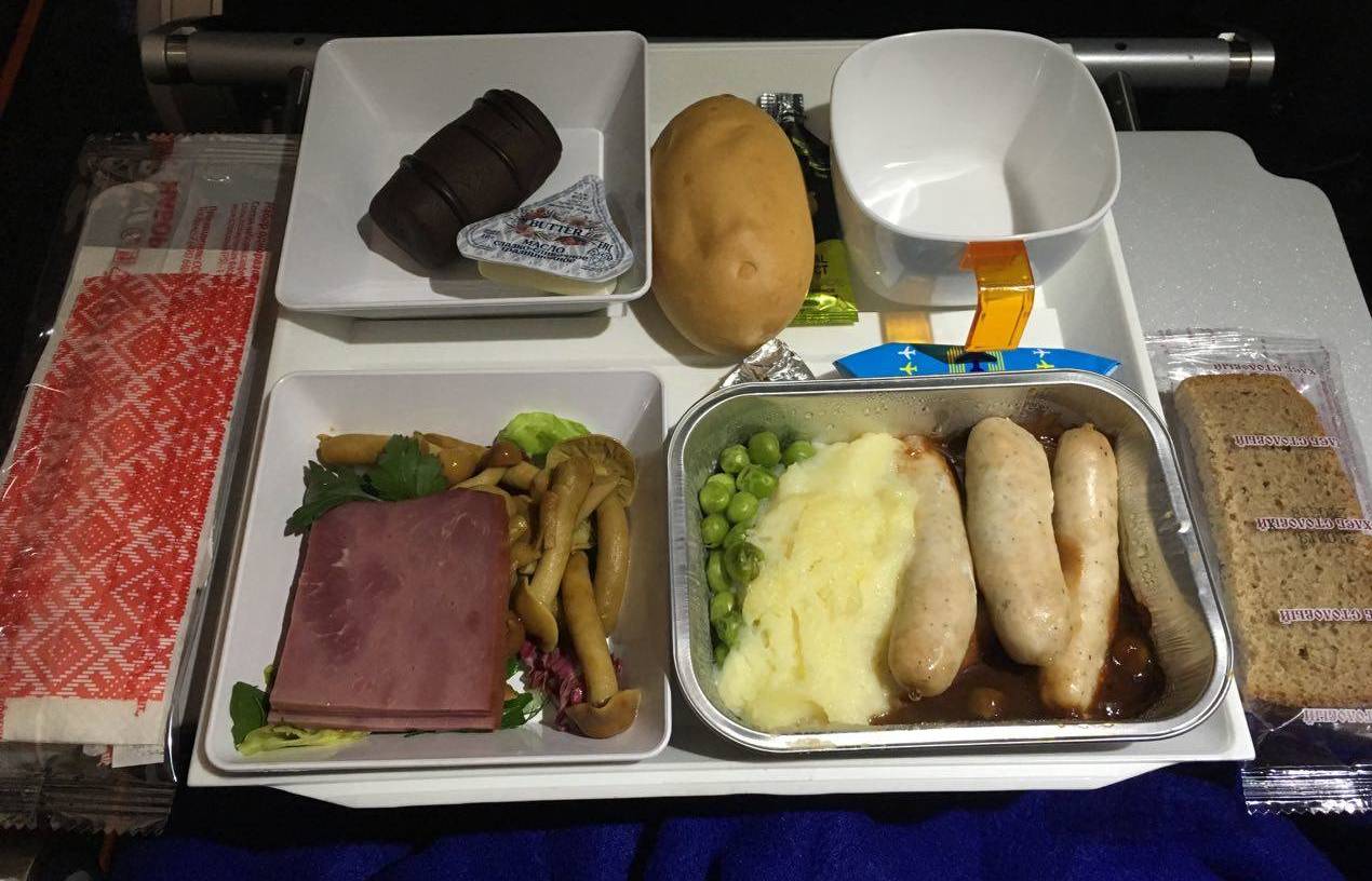 The appetizer consisted of "beef," though it didn't quite taste like beef. It was accompanied by mushrooms, that also didn't really taste like mushrooms to me. I chose the chicken sausage with mashed potatoes option for my entree. It's pretty hard to screw up chicken sausage and mashed potatoes, and I'm happy to report that Aeroflot did not. The meal was heavier than I normally like, but the other option was beef stew — which arguably would have been even heavier. After dinner, attendants came by with coffee, tea, juice and water before collecting trays.