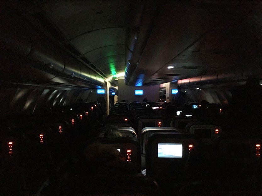 After dinner, the lights were dimmed. Also, I appreciated the fact that the pilots proactively turned off the seatbelt sign, allowing passengers maximum time to stretch and stand.