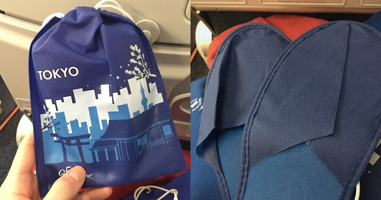 Each seat included a small but denser-than-usual pillow, thick blanket and amenity kit containing a pair of slippers and an eye mask. Before this flight, I'd never received a pair of slippers in economy on a European airline... life never ceases to surprise.