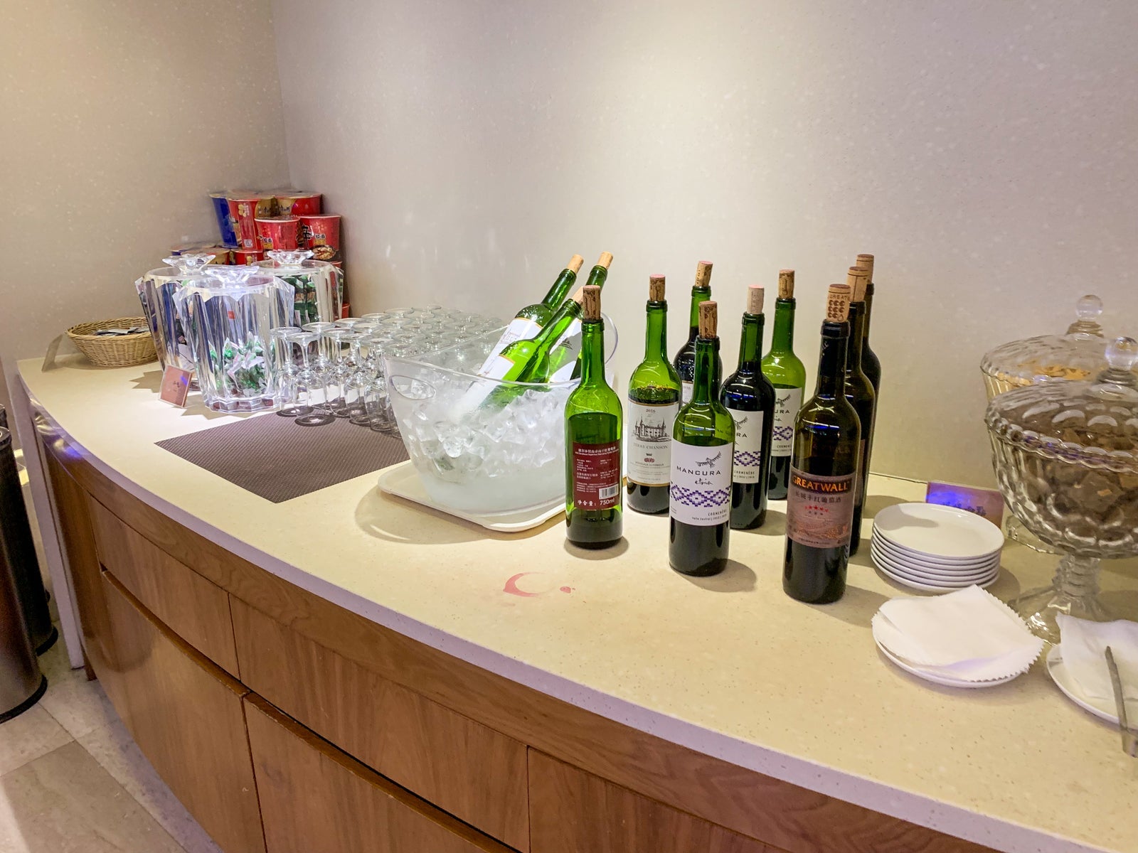 There were a few self-serve bar areas with a rather uninspiring wine selection.