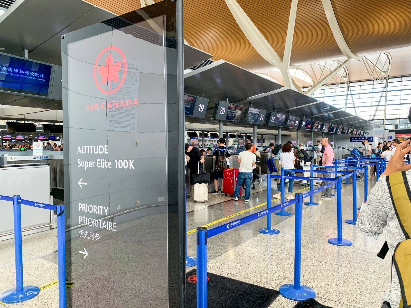 I arrived at Pudong International Airport about two hours before my flight, and the Air Canada check-in area was a complete zoo. With three flights departing in the span of two hours to Montreal, Toronto (YYZ) and Vancouver (YVR), there were hundreds of passengers queued up in the economy line.