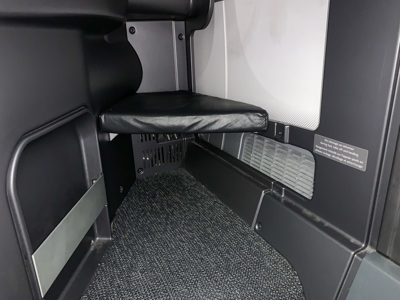 I loved the signature maple leaf on the bulkhead. The cabin used neutral colors that felt professional, almost like a corporate boardroom, but that splash of red went a long way toward brightening things up.