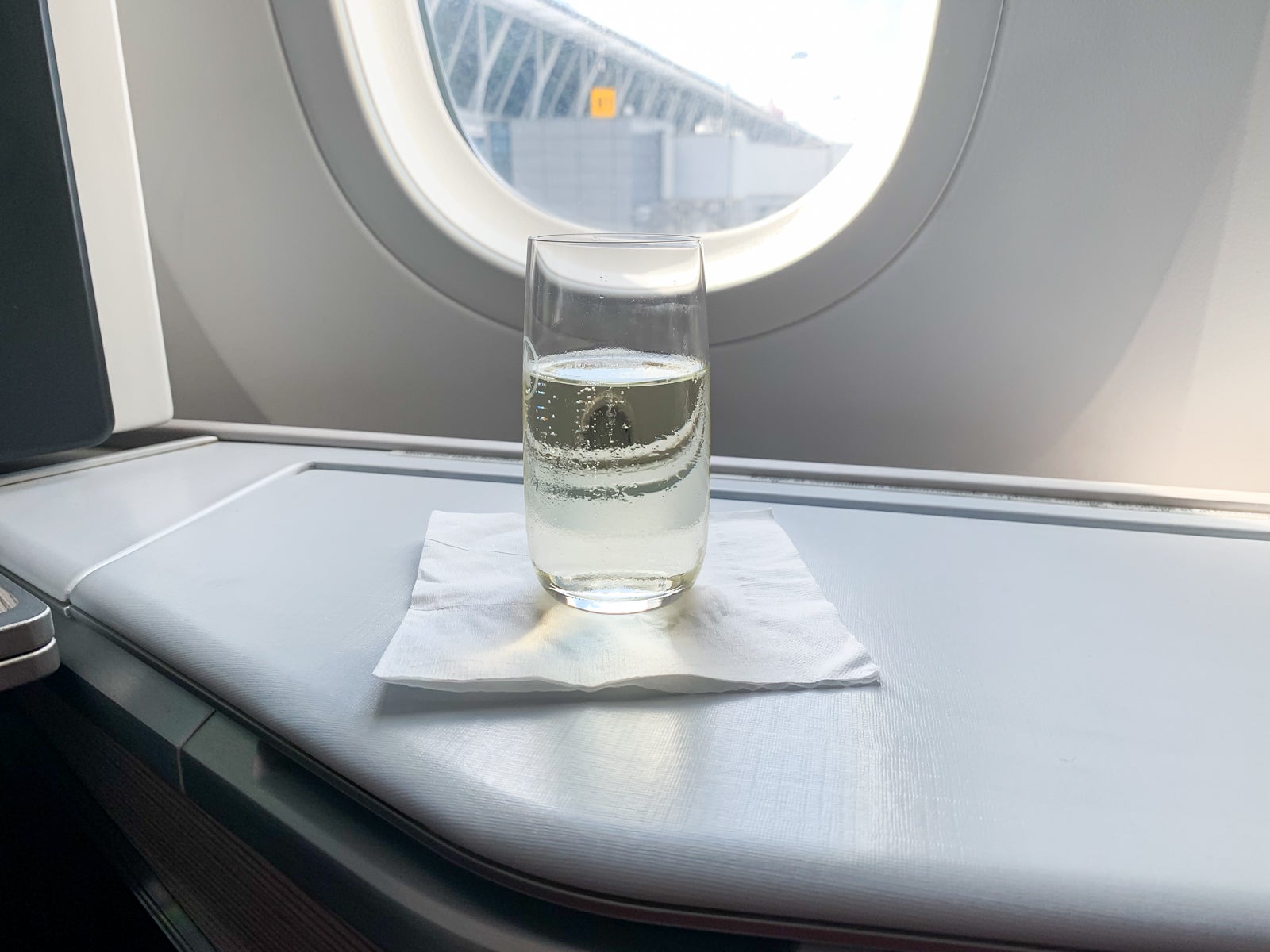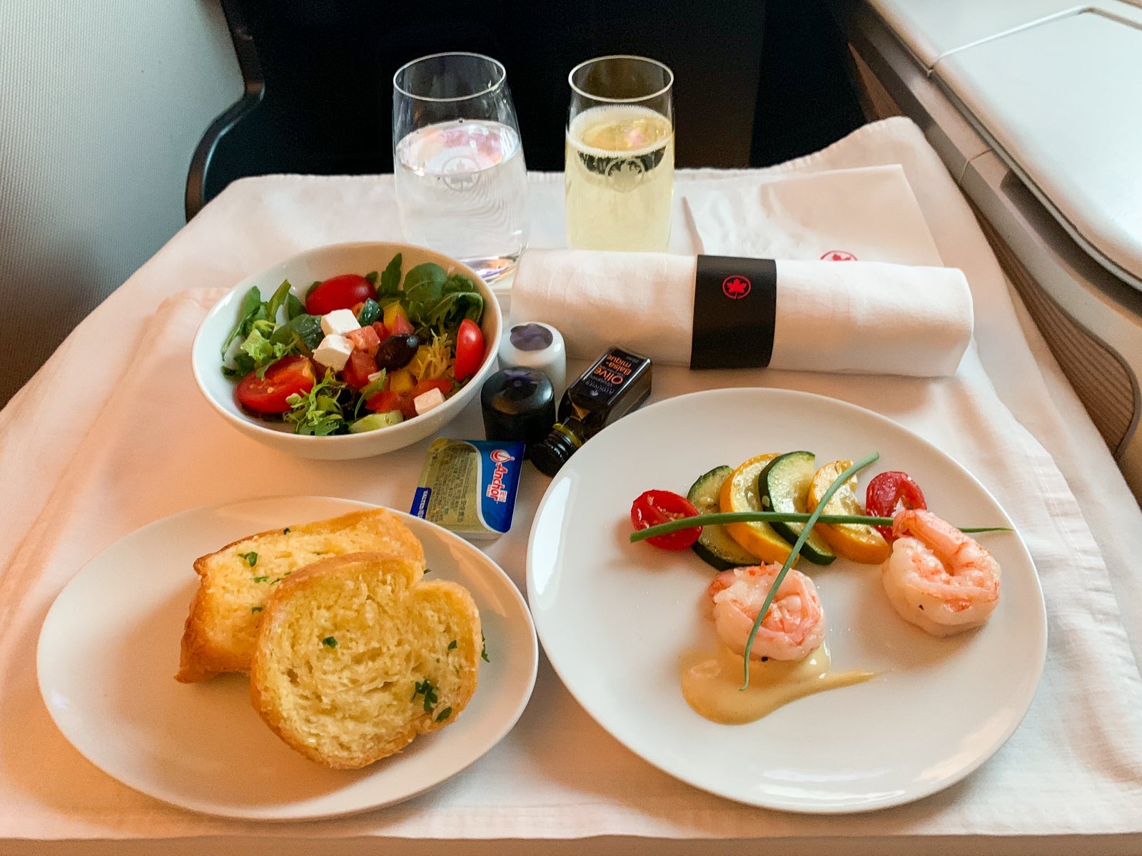 Once things calmed down, flight attendants came by with a tray of predeparture beverages, including prosecco, water and orange juice. Air Canada serves Laurent Perrier brut in business class, a huge improvement over its previous selection.