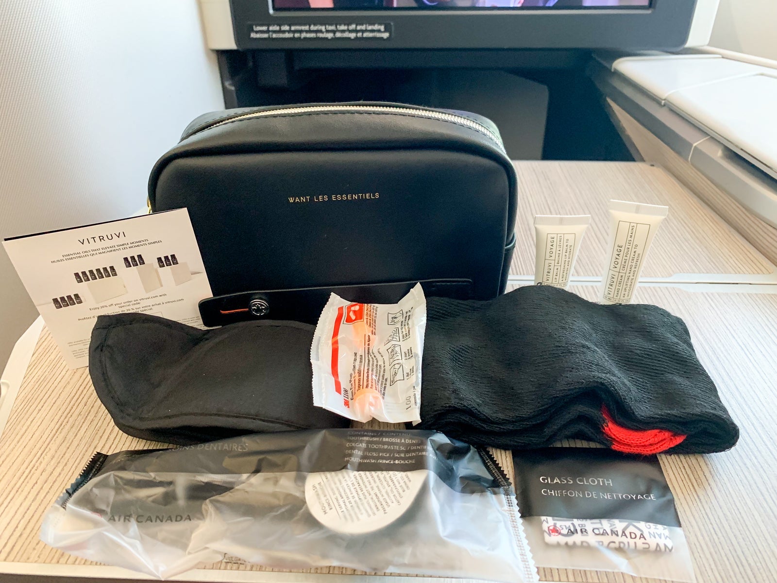 The kit itself was a huge upgrade over the scratchy one Air Canada used to offer, and featured all the usual goodies including socks, a dental kit, an eye mask, earplugs and lotion and lip balm by Vitruvi. All in all, a solid business-class kit.
