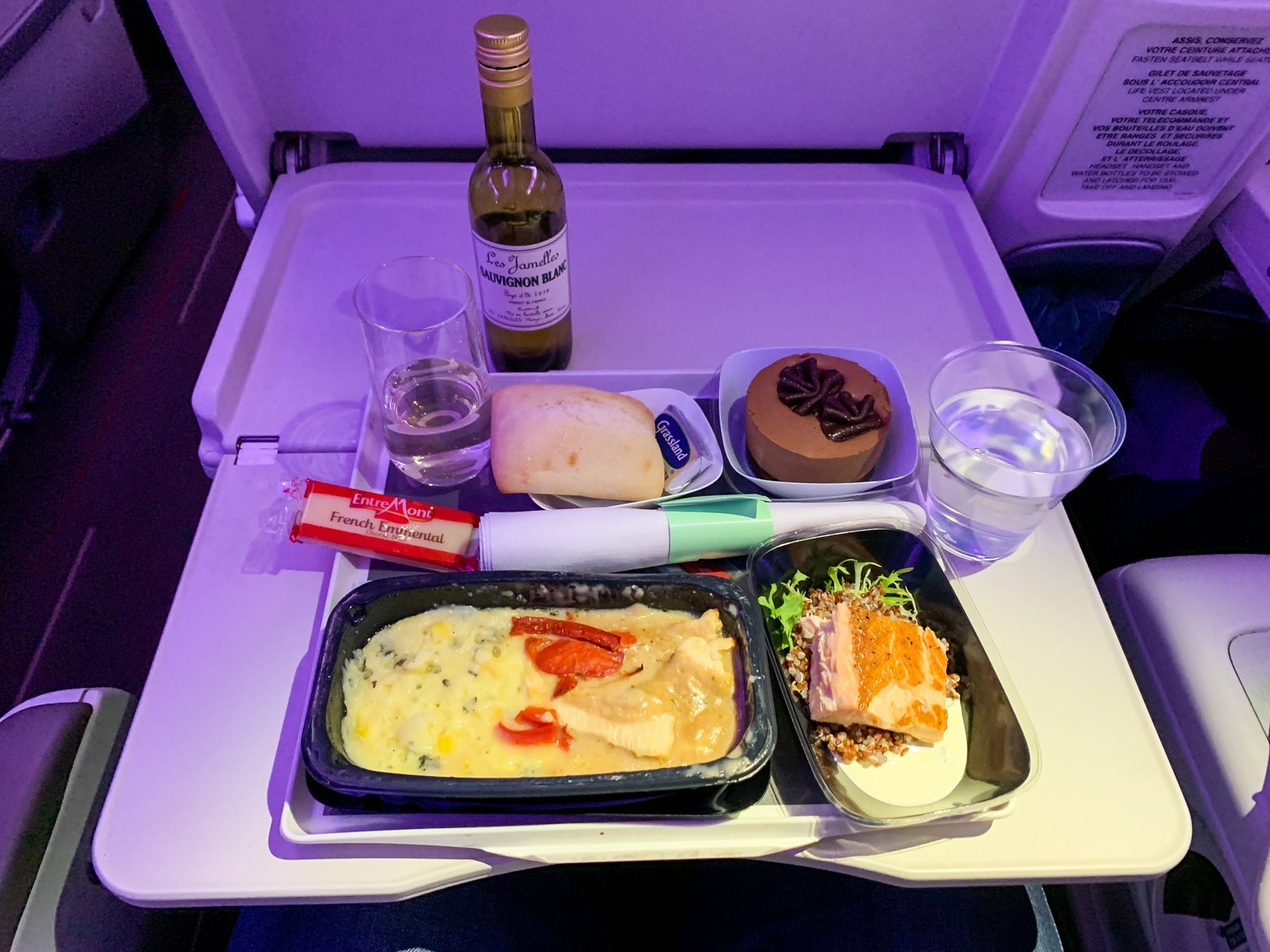 I was not expecting Kristal or Krug. Instead, the airline offered Heidsieck & CO Monopole Silver Top Champagne. While that wasn't a bad pick, I went with some sauvignon blanc. The wine bottle was plastic, but at least the glass it was poured into was real.