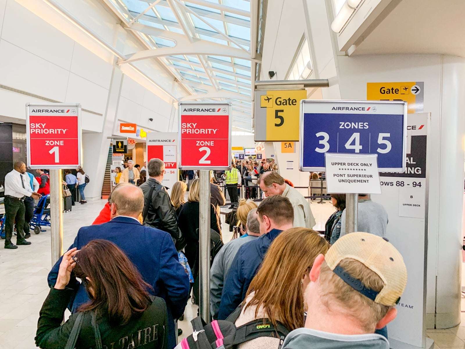 The boarding process was as organized as it could be for a plane carrying 516 passengers. The space at JFK was cramped, but the staff did a good job calling out boarding groups and keeping everything orderly.