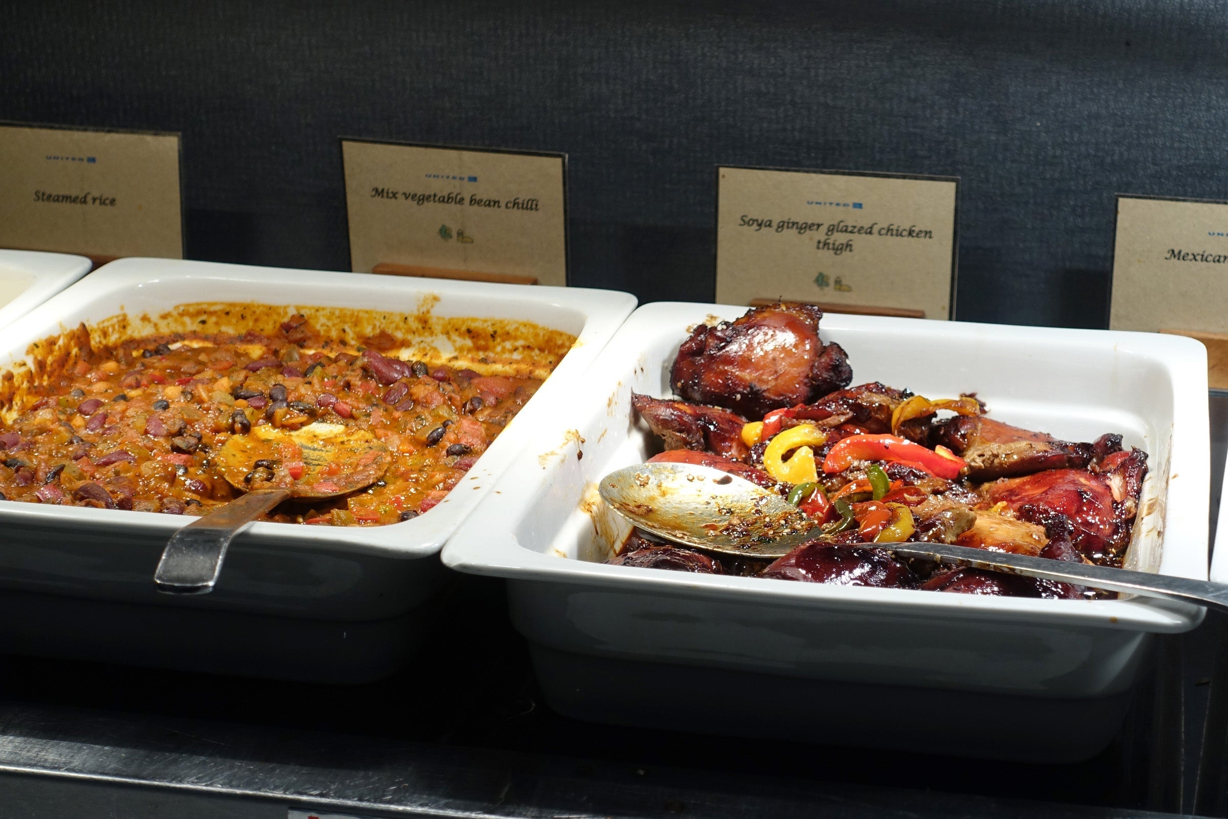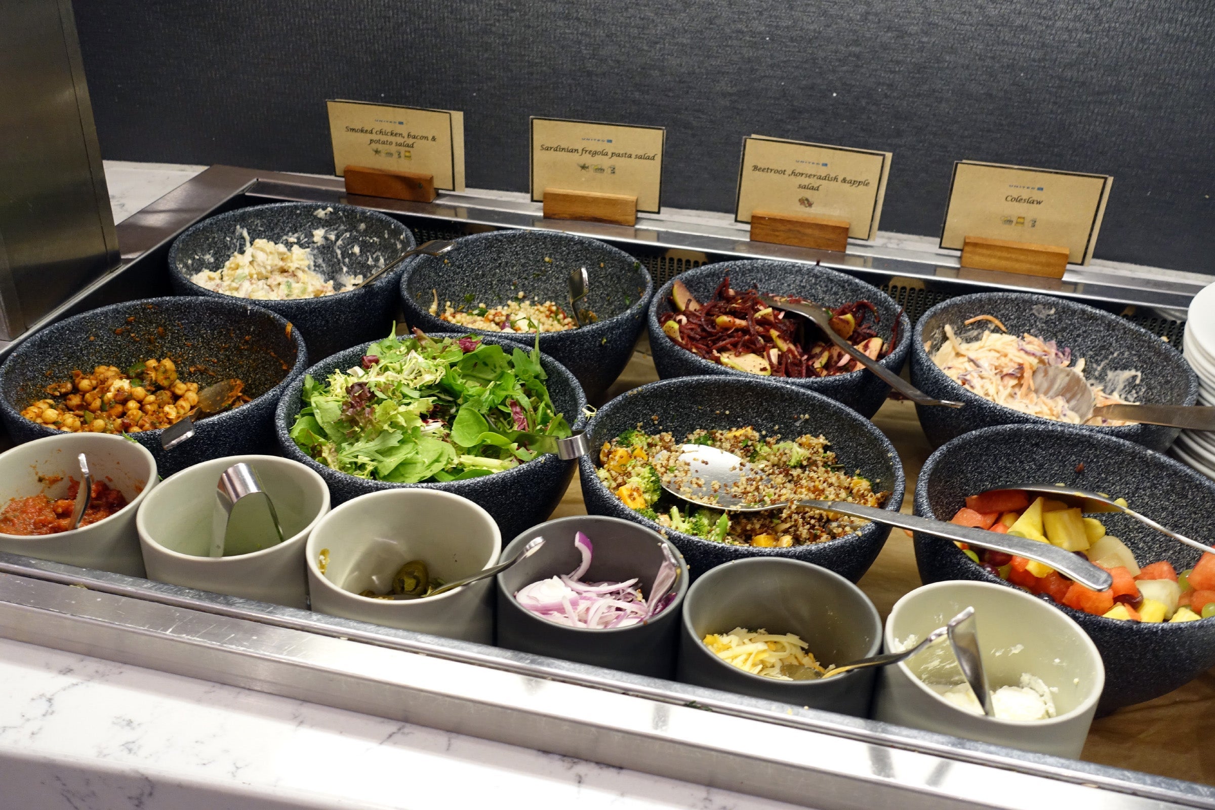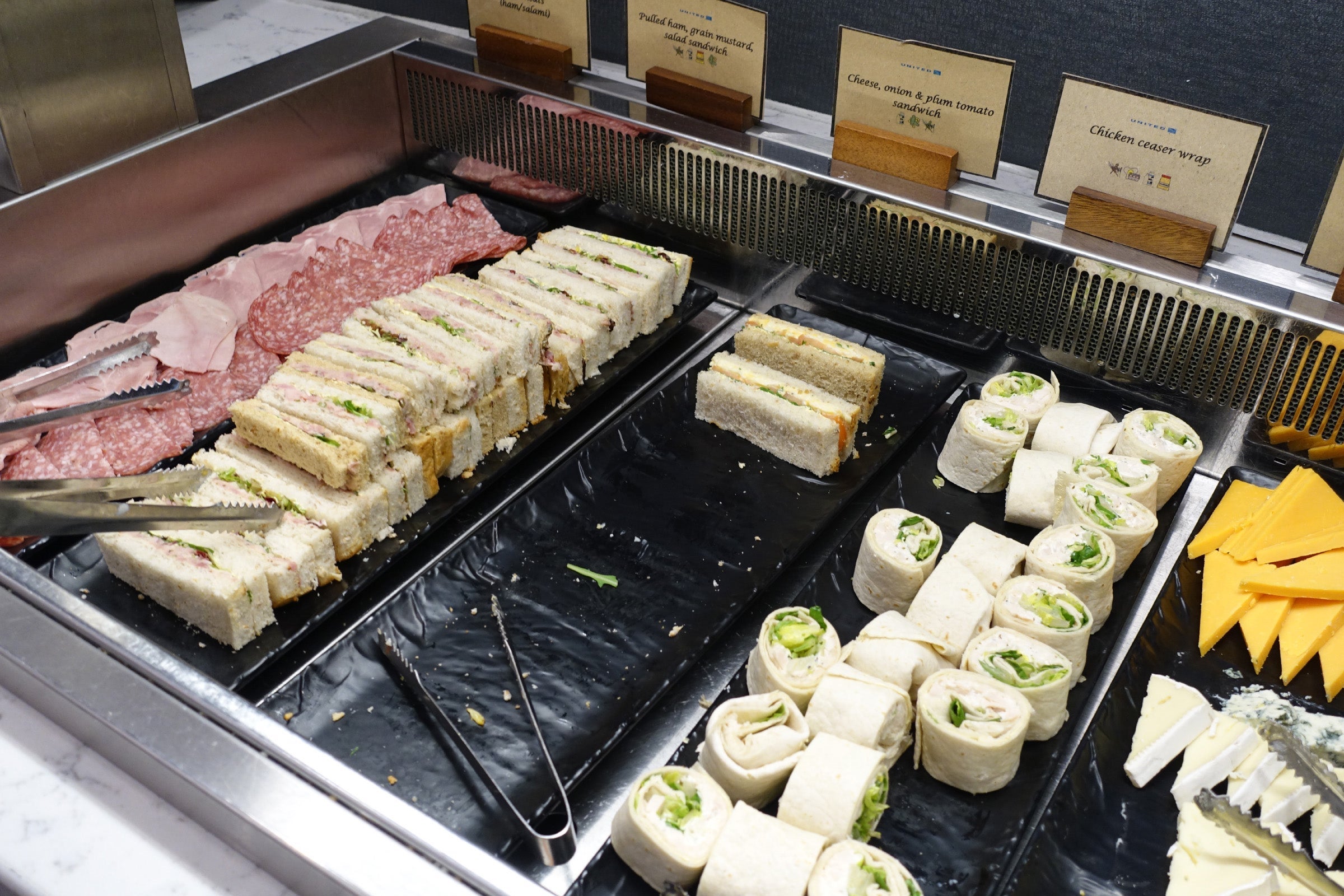 This isn't your ordinary UA spread — there's a mix of hot and cold items, with the most robust selection I've seen outside of a Polaris Lounge.