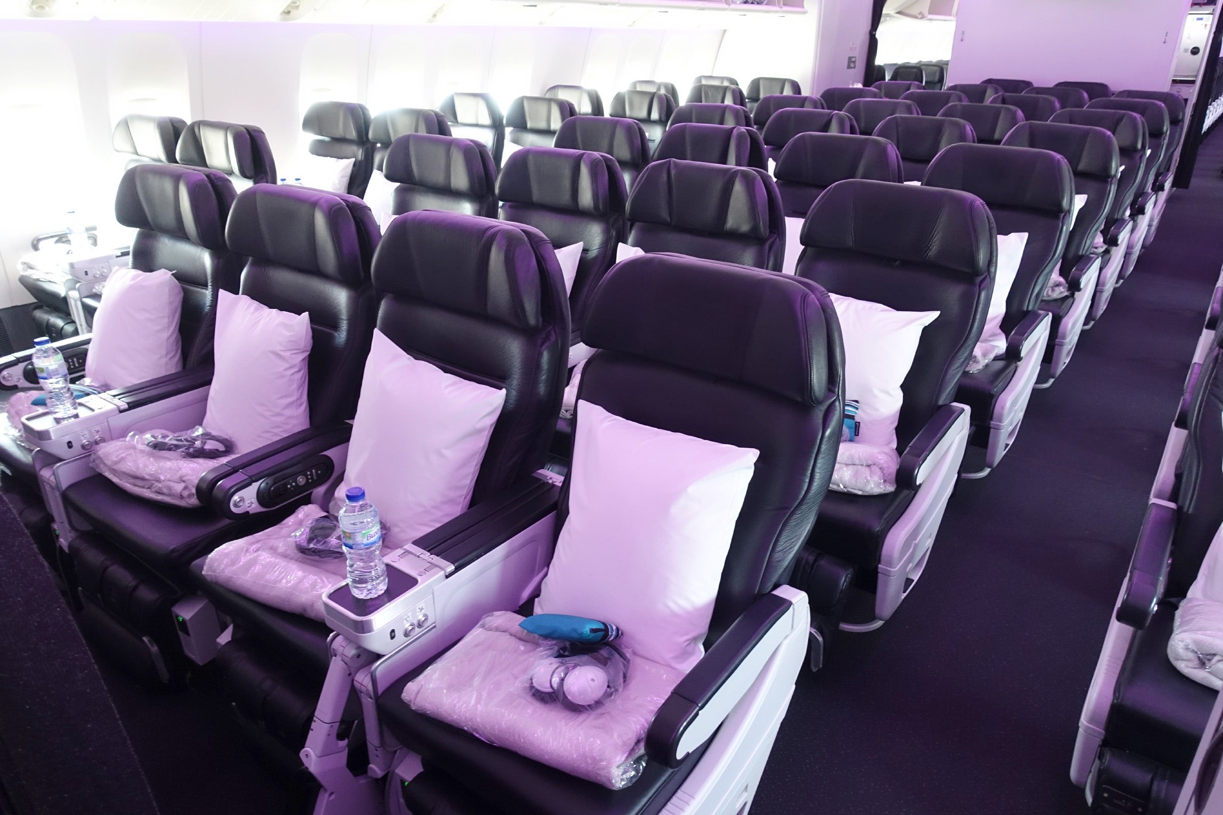 Since I was first to board, I also managed to snag a quick glance at the very large premium-economy cabin, which offers 54 seats in a 2-4-2 arrangement.