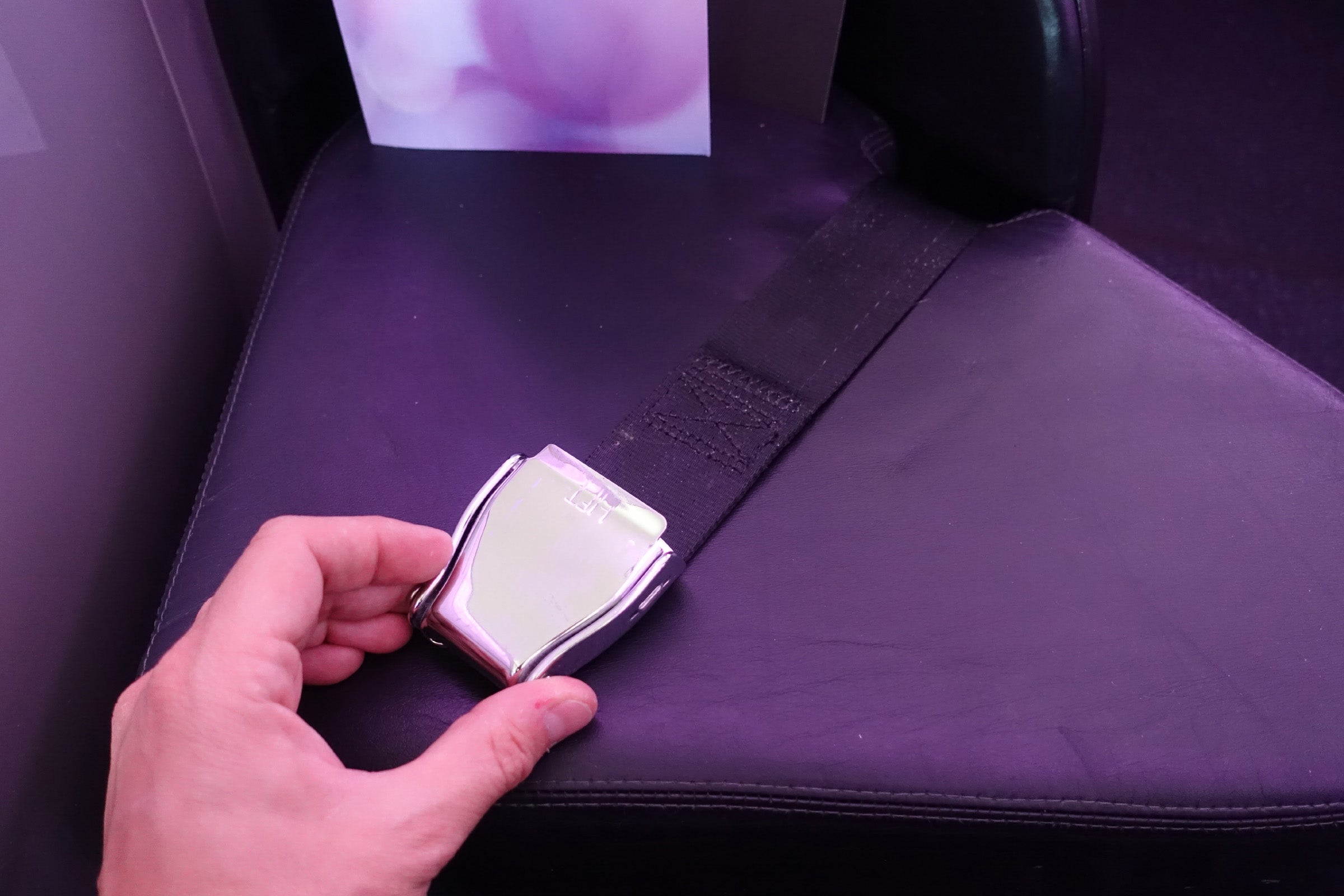 One cool feature is that the ottoman includes a seatbelt, so you can actually dine with another passenger if you'd like.