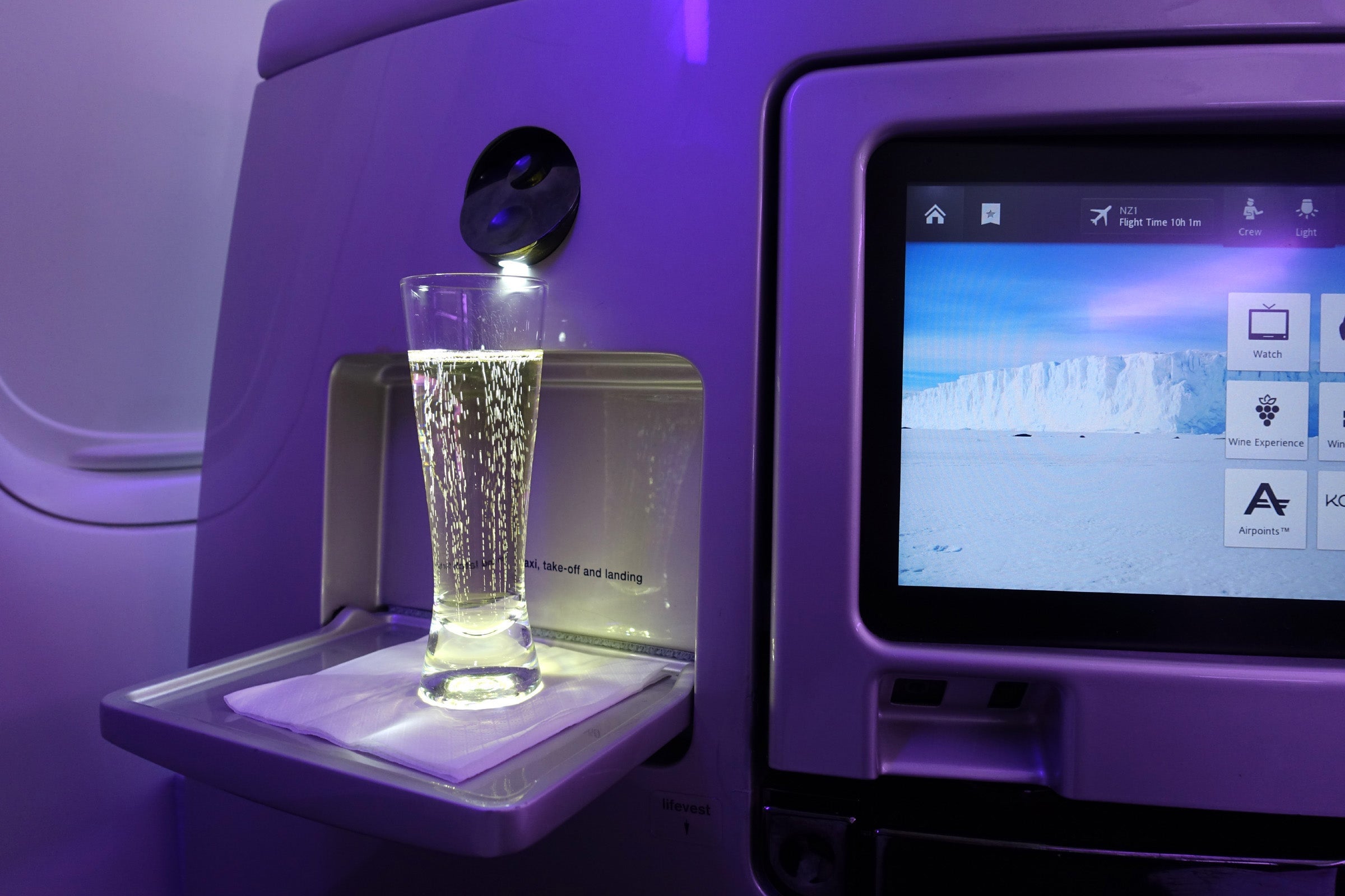 After boarding, a member of the UK-based crew offered a choice of beverage. I requested a glass of Champagne, which was served after a noticeable delay. ANZ serves either Billecart-Salmon or Laurent-Perrier Champagne. To be honest, I never saw the bottle and I neglected to ask which I was served, since I didn't ask for a refill after takeoff, but I'm generally a fan of both bubbly options.